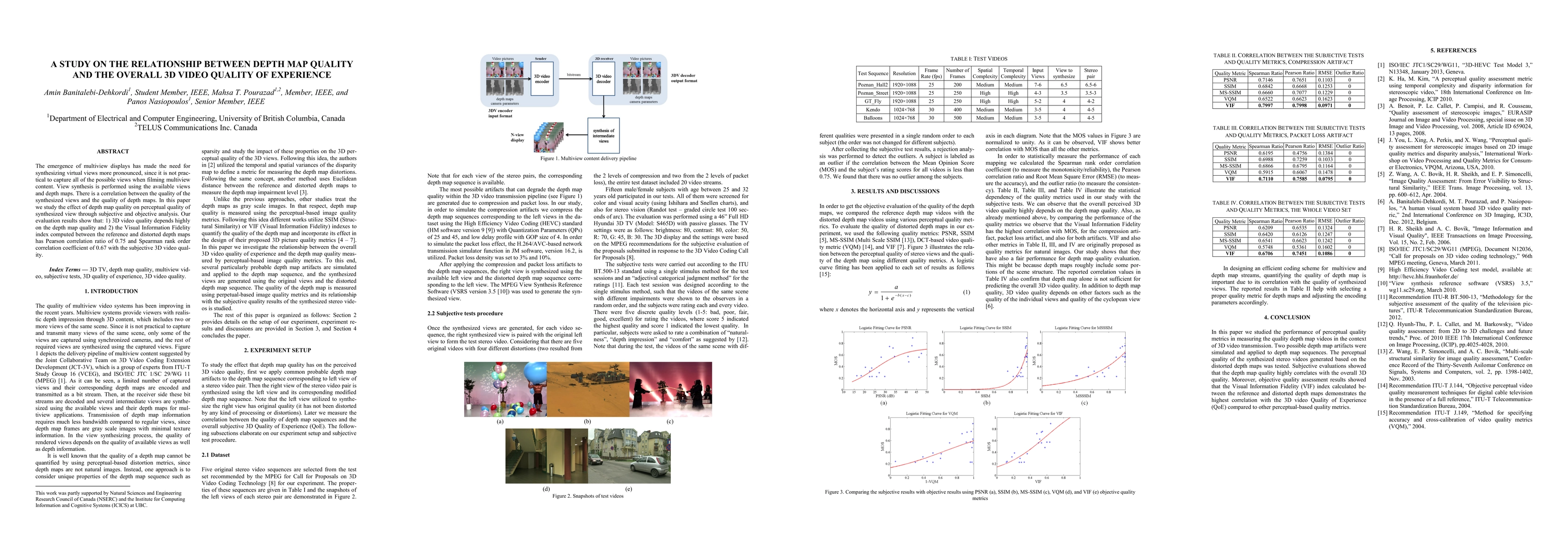 The emergence of multiview displays has made the need for synthesizing virtual views more pronounced, since it is not practical to capture all of the possible views when filming multiview content. View synthesis is performed using the available views and depth maps. There is a correlation between the quality of the synthesized views and the quality of depth maps. In this paper we study the effect of depth map quality on perceptual quality of synthesized view through subjective and objective analysis. Our evaluation results show that: 1) 3D video quality depends highly on the depth map quality and 2) the Visual Information Fidelity index computed between the reference and distorted depth maps has Pearson correlation ratio of 0.75 and Spearman rank order correlation coefficient of 0.67 with the subjective 3D video quality.