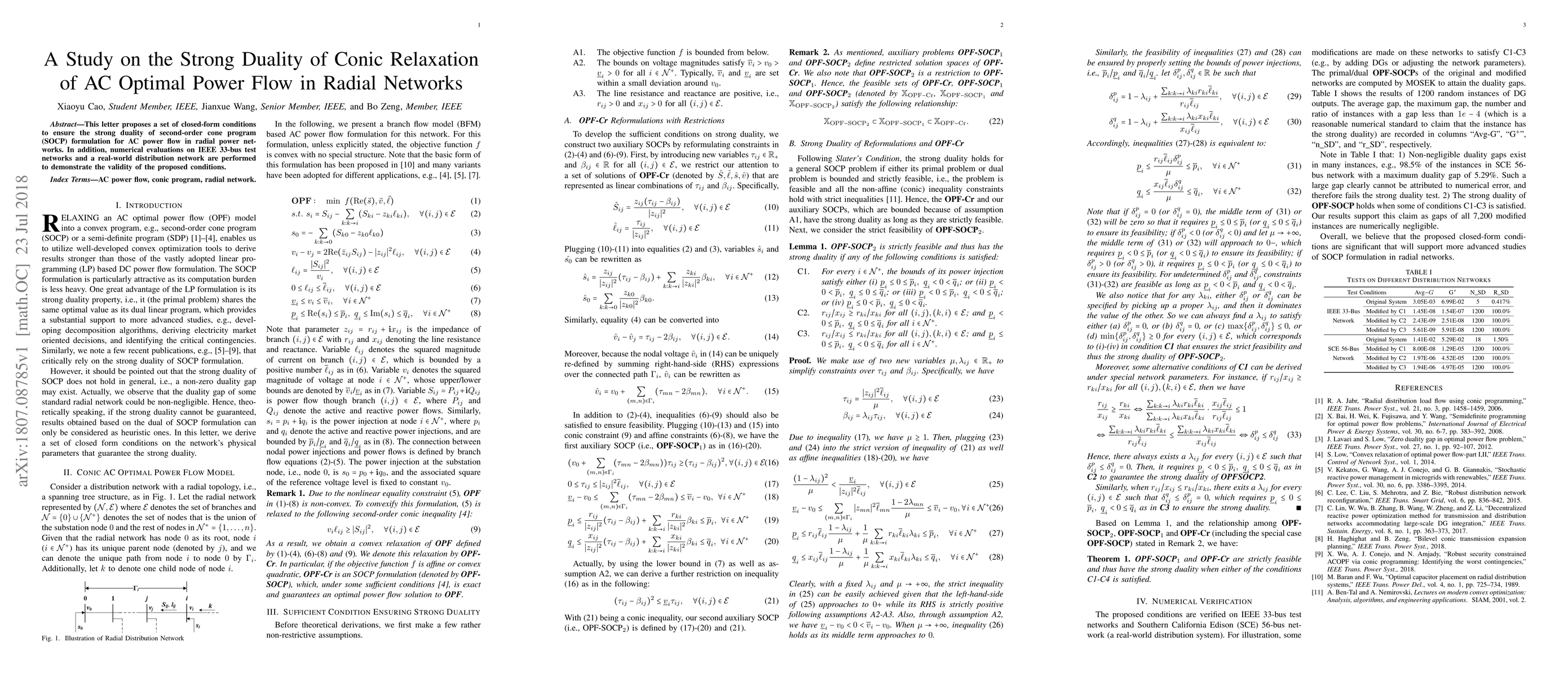 This paper proposes a set of closed-form conditions to ensure the strong duality of second-order cone program (SOCP) formulation for AC power flow in radial power networks. In addition, numerical evaluations on IEEE 33-bus test networks and a real-world distribution network are performed to demonstrate the validity of the proposed conditions.