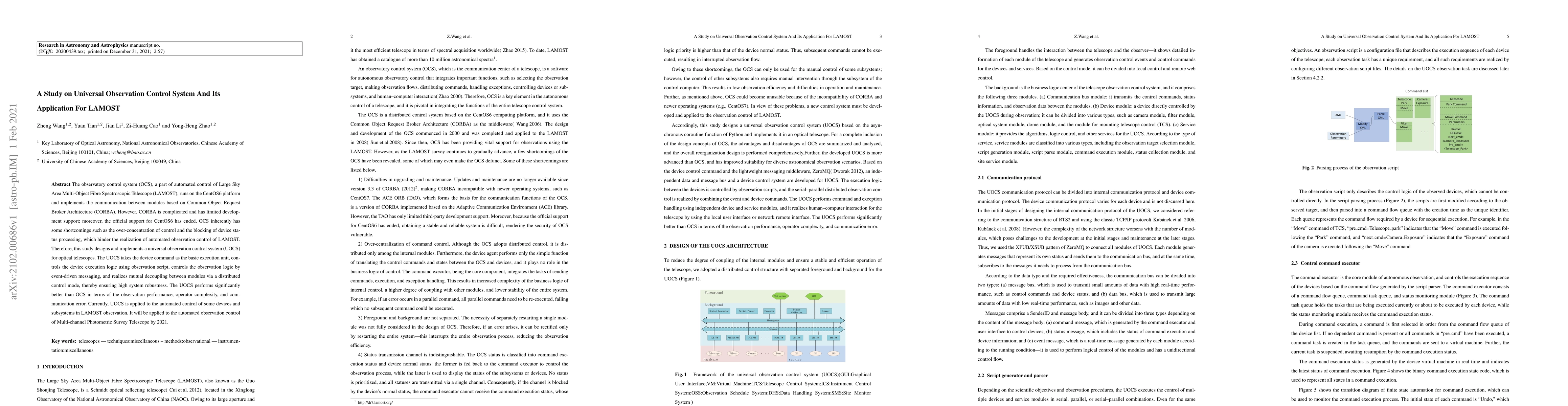 Researchers developed a universal observation control system (UOCS) to improve the automated control of optical telescopes like LAMOST, achieving better performance and robustness compared to existing systems.