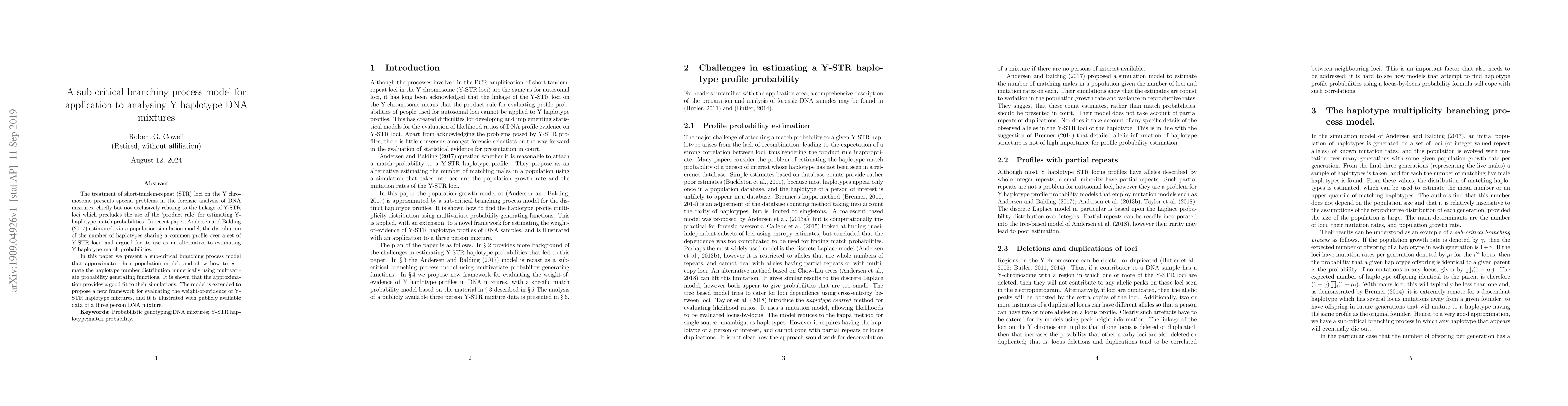 The paper introduces a sub-critical branching process model and a novel framework for analyzing Y-haplotype DNA mixtures, along with a likelihood maximization algorithm tailored for Y-STR loci.