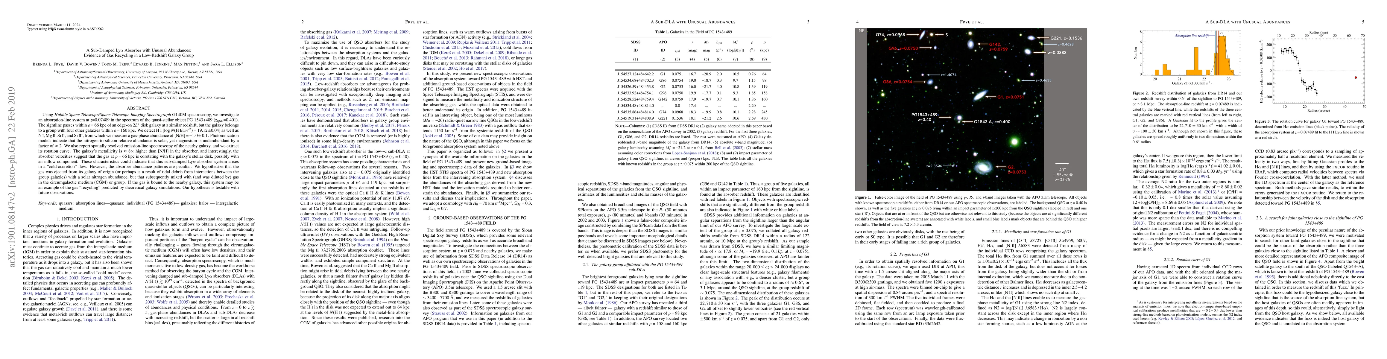 Using Hubble Space Telescope/Space Telescope Imaging Spectrograph G140M spectroscopy, we investigate an absorption-line system at $z$=0.07489 in the spectrum of the quasi-stellar object PG 1543+489 ($z_{QSO}$=0.401). The sightline passes within $\rho = 66$ kpc of an edge-on $2L^*$ disk galaxy at a similar redshift, but the galaxy belongs to a group with four other galaxies within $\rho =160$ kpc. We detect H I [log $N$(H I/$cm^{-2}$) = 19.12$\pm$0.04] as well as N I, Mg II, Si II, and Si III, from which we measure a gas-phase abundance of [N/H] = $-1.0\pm 0.1$. Photoionization models indicate that the nitrogen-to-silicon relative abundance is solar, yet magnesium is underabundant by a factor of $\approx$ 2. We also report spatially resolved emission-line spectroscopy of the nearby galaxy, and we extract its rotation curve. The galaxy's metallicity is $\approx 8 \times$ higher than [N/H] in the absorber, and interestingly, the absorber velocities suggest that the gas at $\rho =$ 66 kpc is corotating with the galaxy's stellar disk, possibly with an inflow component. These characteristics could indicate that this sub-damped Ly$\alpha$ absorber system arises in a "cold-accretion" flow. However, the absorber abundance patterns are peculiar. We hypothesize that the gas was ejected from its galaxy of origin (or perhaps is a result of tidal debris from interactions between the group galaxies) with a solar nitrogen abundance, but that subsequently mixed with (and was diluted by) gas in the circumgalactic medium (CGM) or group. If the gas is bound to the nearby galaxy, this system may be an example of the gas "recycling" predicted by theoretical galaxy simulations. Our hypothesis is testable with future observations.