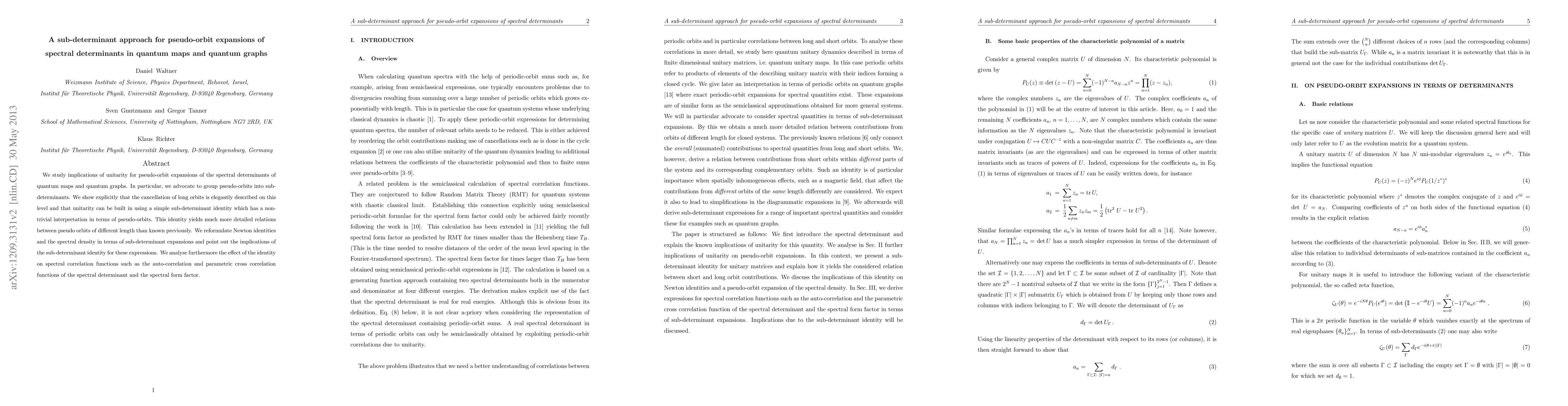 We study implications of unitarity for pseudo-orbit expansions of the spectral determinants of quantum maps and quantum graphs. In particular, we advocate to group pseudo-orbits into sub-determinants. We show explicitly that the cancellation of long orbits is elegantly described on this level and that unitarity can be built in using a simple sub-determinant identity which has a non-trivial interpretation in terms of pseudo-orbits. This identity yields much more detailed relations between pseudo orbits of different length than known previously. We reformulate Newton identities and the spectral density in terms of sub-determinant expansions and point out the implications of the sub-determinant identity for these expressions. We analyse furthermore the effect of the identity on spectral correlation functions such as the auto-correlation and parametric cross correlation functions of the spectral determinant and the spectral form factor.