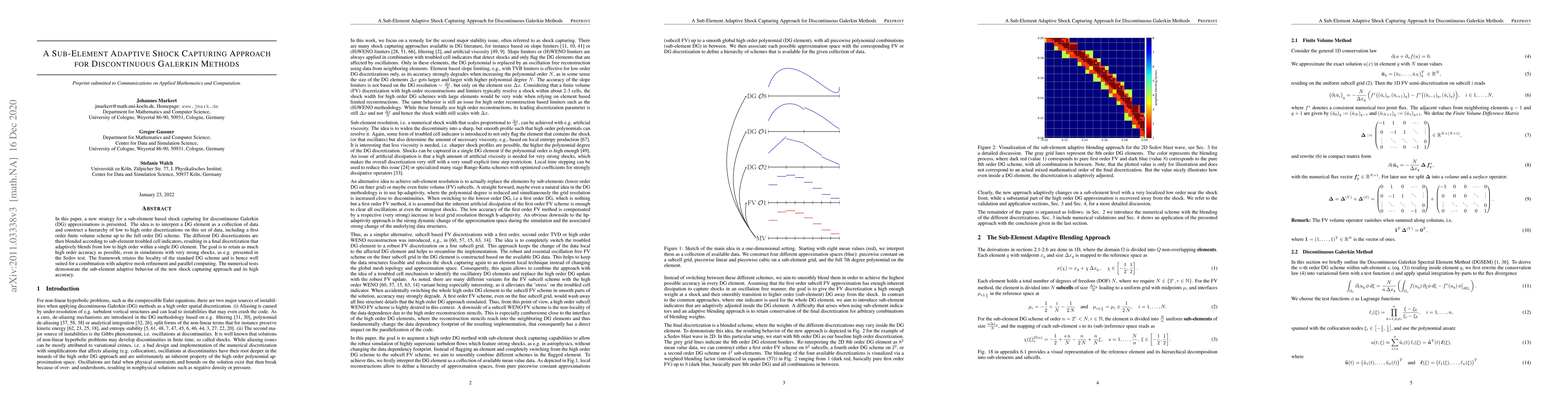 In this paper, a new strategy for a sub-element based shock capturing for discontinuous Galerkin (DG) approximations is presented. The idea is to interpret a DG element as a collection of data and construct a hierarchy of low to high order discretizations on this set of data, including a first order finite volume scheme up to the full order DG scheme. The different DG discretizations are then blended according to sub-element troubled cell indicators, resulting in a final discretization that adaptively blends from low to high order within a single DG element. The goal is to retain as much high order accuracy as possible, even in simulations with very strong shocks, as e.g. presented in the Sedov test. The framework retains the locality of the standard DG scheme and is hence well suited for a combination with adaptive mesh refinement and parallel computing. The numerical tests demonstrate the sub-element adaptive behavior of the new shock capturing approach and its high accuracy.