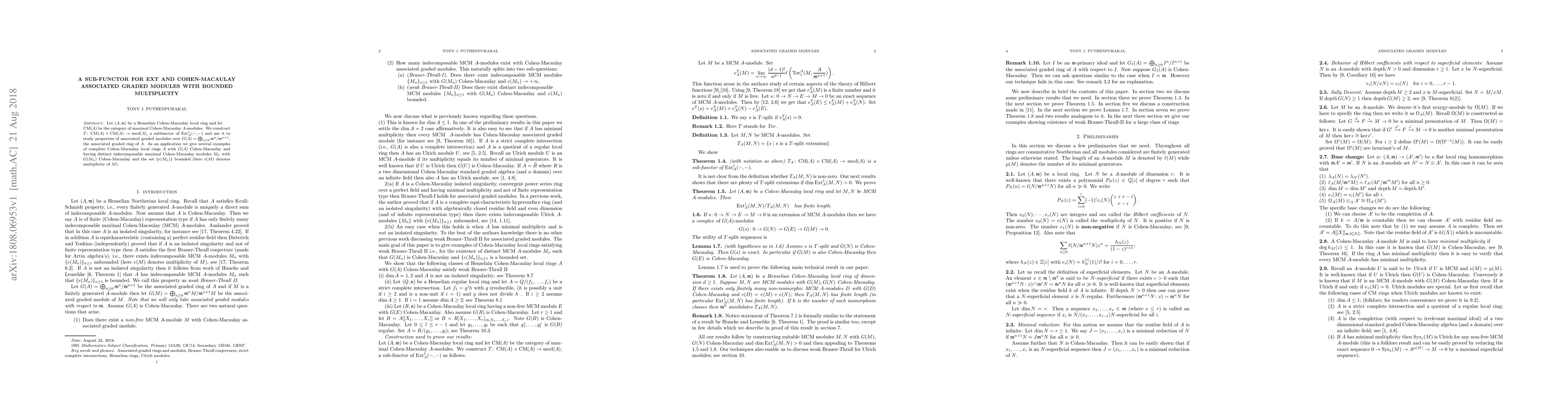This paper constructs a subfunctor $T$ of $Ext^1_A(-, -)$ for maximal Cohen-Macaulay modules over a Henselian Cohen-Macaulay local ring, and utilizes it to explore properties of associated graded modules over the associated graded ring of the ring. It provides examples of complete Cohen-Macaulay local rings with bounded multiplicities for their maximal Cohen-Macaulay modules.