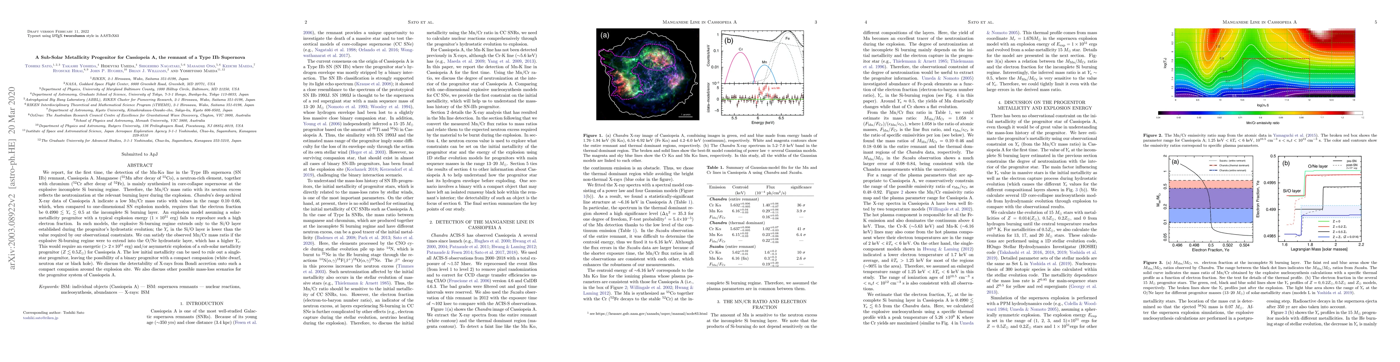 This paper reports the detection of the Mn-K$\alpha$ line in Cassiopeia A, a Type IIb supernova remnant, indicating a low Mn/Cr mass ratio. The findings suggest a sub-solar metallicity progenitor and an energetic or asymmetric explosion to achieve the observed high electron fraction, ruling out a single-star progenitor and favoring a binary system with a compact companion.