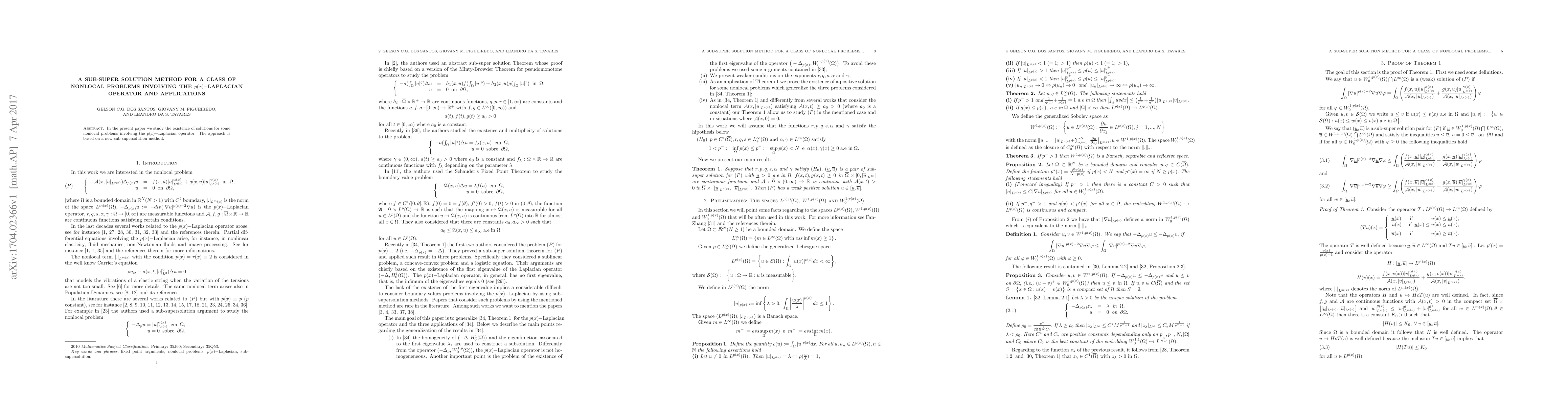 Summary: This paper introduces a novel sub-supersolution method to establish the existence of solutions for nonlocal problems involving the p(x)-Laplacian operator, demonstrating its applicability through specific examples.