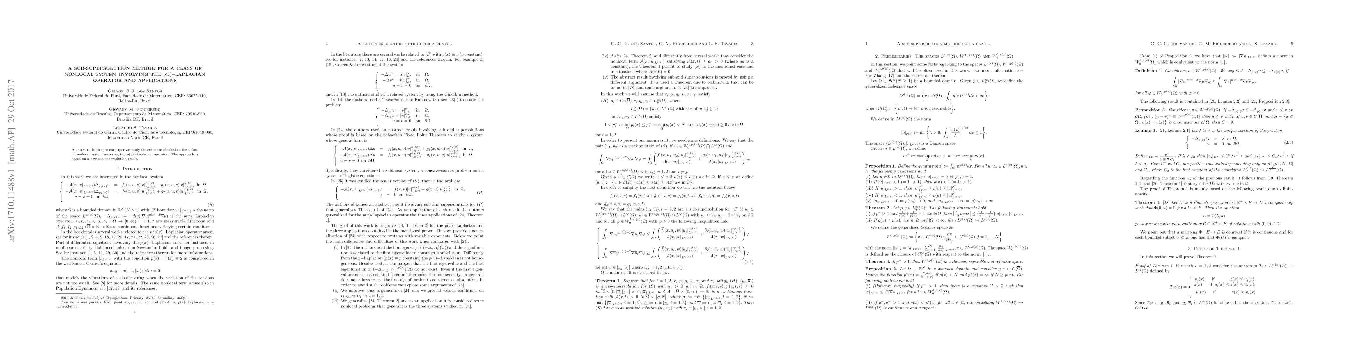 Summary: This paper explores the existence of solutions for a nonlocal system incorporating the p(x)-Laplacian operator using a novel sub-supersolution method. The method is demonstrated through practical applications.