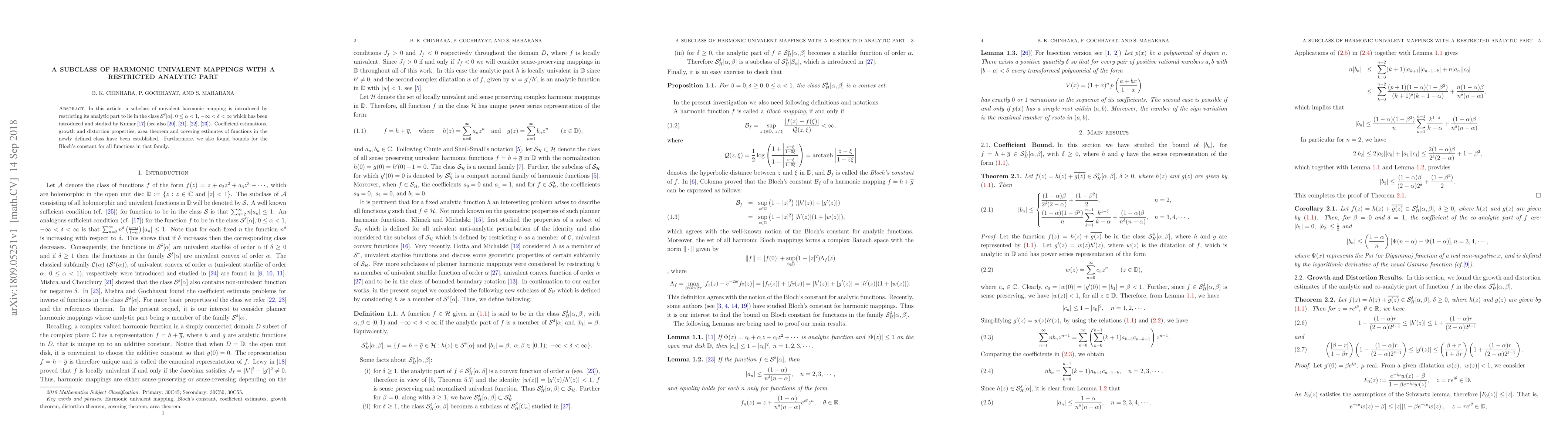 In this article, a subclass of univalent harmonic mapping is introduced by restricting its analytic part to lie in the class $\mathcal{S}^{\delta}[\alpha]$, $0\leq \alpha < 1$, $-\infty < \delta < \infty$ which has been introduced and studied by Kumar \cite{Kumar87} (see also \cite{Mishra95}, \cite{MishraChoudhury95}, \cite{MishraDas96}, \cite{MishraGochhayat06}). Coefficient estimations, growth and distortion properties, area theorem and covering estimates of functions in the newly defined class have been established. Furthermore, we also found bounds for the Bloch's constant for all functions in that family.
