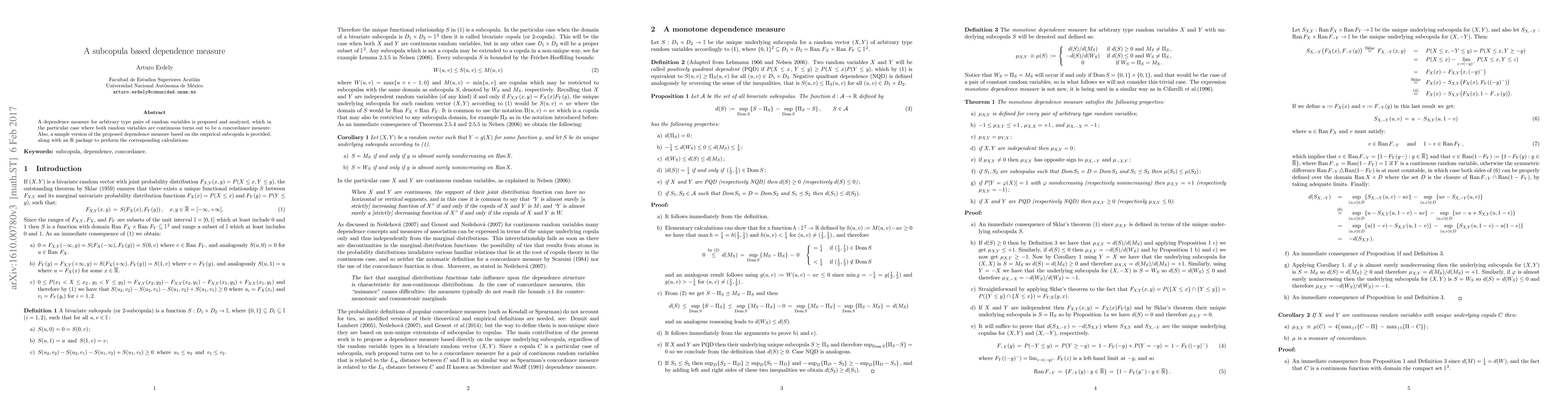 This paper proposes a new dependence measure for pairs of random variables, which acts as a concordance measure for continuous variables. It also introduces a sample version based on empirical subcopula and provides an R package for its implementation.