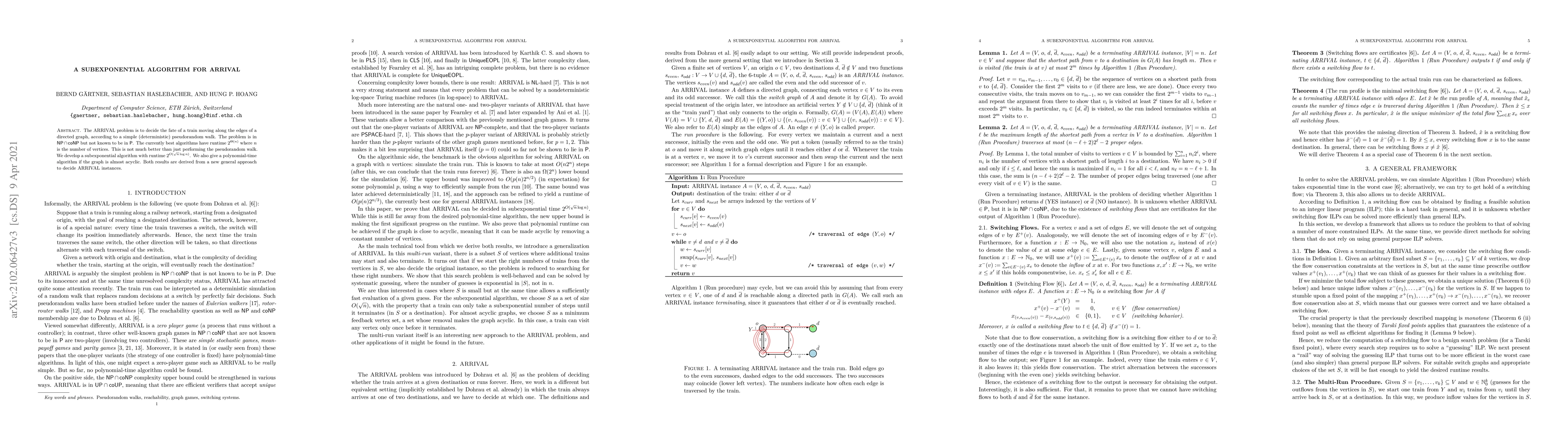 The ARRIVAL problem is to decide the fate of a train moving along the edges of a directed graph, according to a simple (deterministic) pseudorandom walk. The problem is in $NP \cap coNP$ but not known to be in $P$. The currently best algorithms have runtime $2^{\Theta(n)}$ where $n$ is the number of vertices. This is not much better than just performing the pseudorandom walk. We develop a subexponential algorithm with runtime $2^{O(\sqrt{n}\log n)}$. We also give a polynomial-time algorithm if the graph is almost acyclic. Both results are derived from a new general approach to solve ARRIVAL instances.