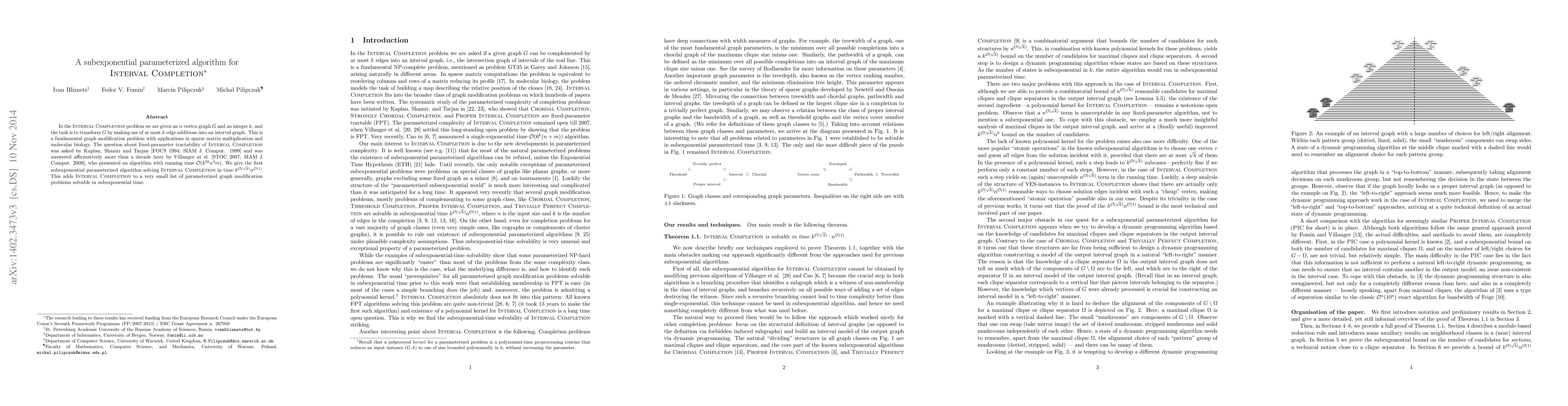 In the Interval Completion problem we are given a graph G and an integer k, and the task is to turn G using at most k edge additions into an interval graph, i.e., a graph admitting an intersection model of intervals on a line. Motivated by applications in sparse matrix multiplication and molecular biology, Kaplan, Shamir and Tarjan [FOCS 1994; SIAM J. Comput. 1999] asked for a fixed-parameter algorithm solving this problem. This question was answer affirmatively more than a decade later by Villanger at el. [STOC 2007; SIAM J. Comput. 2009], who presented an algorithm with running time $O(k^{2k}n^3m)$. We give the first subexponential parameterized algorithm solving Interval Completion in time $k^{O(\sqrt{k})} n^{O(1)}$. This adds Interval Completion to a very small list of parameterized graph modification problems solvable in subexponential time.