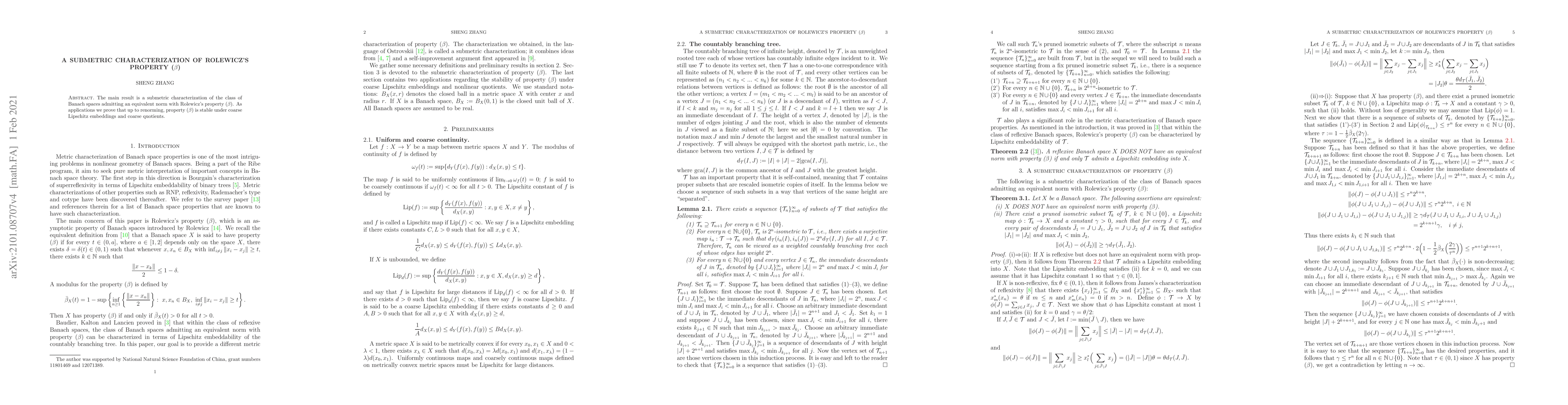 The main result is a submetric characterization of the class of Banach spaces admitting an equivalent norm with Rolewicz's property ($\beta$). As applications we prove that up to renorming, property ($\beta$) is stable under coarse Lipschitz embeddings and coarse quotients.