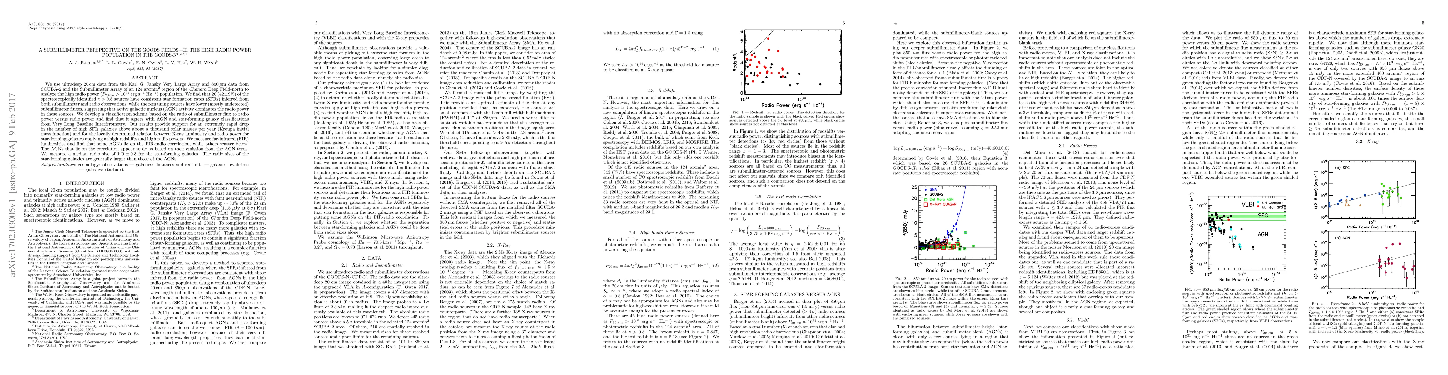 We use ultradeep 20 cm data from the Karl G. Jansky Very Large Array and 850 micron data from SCUBA-2 and the Submillimeter Array of an 124 arcmin^2 region of the Chandra Deep Field-north to analyze the high radio power (P_20cm>10^31 erg s^-1 Hz^-1) population. We find that 20 (42+/-9%) of the spectroscopically identified z>0.8 sources have consistent star formation rates (SFRs) inferred from both submillimeter and radio observations, while the remaining sources have lower (mostly undetected) submillimeter fluxes, suggesting that active galactic nucleus (AGN) activity dominates the radio power in these sources. We develop a classification scheme based on the ratio of submillimeter flux to radio power versus radio power and find that it agrees with AGN and star-forming galaxy classifications from Very Long Baseline Interferometry. Our results provide support for an extremely rapid drop in the number of high SFR galaxies above about a thousand solar masses per year (Kroupa initial mass function) and for the locally determined relation between X-ray luminosity and radio power for star-forming galaxies applying at high redshifts and high radio powers. We measure far-infrared (FIR) luminosities and find that some AGNs lie on the FIR-radio correlation, while others scatter below. The AGNs that lie on the correlation appear to do so based on their emission from the AGN torus. We measure a median radio size of 1.0+/-0.3 arcsecond for the star-forming galaxies. The radio sizes of the star-forming galaxies are generally larger than those of the AGNs.