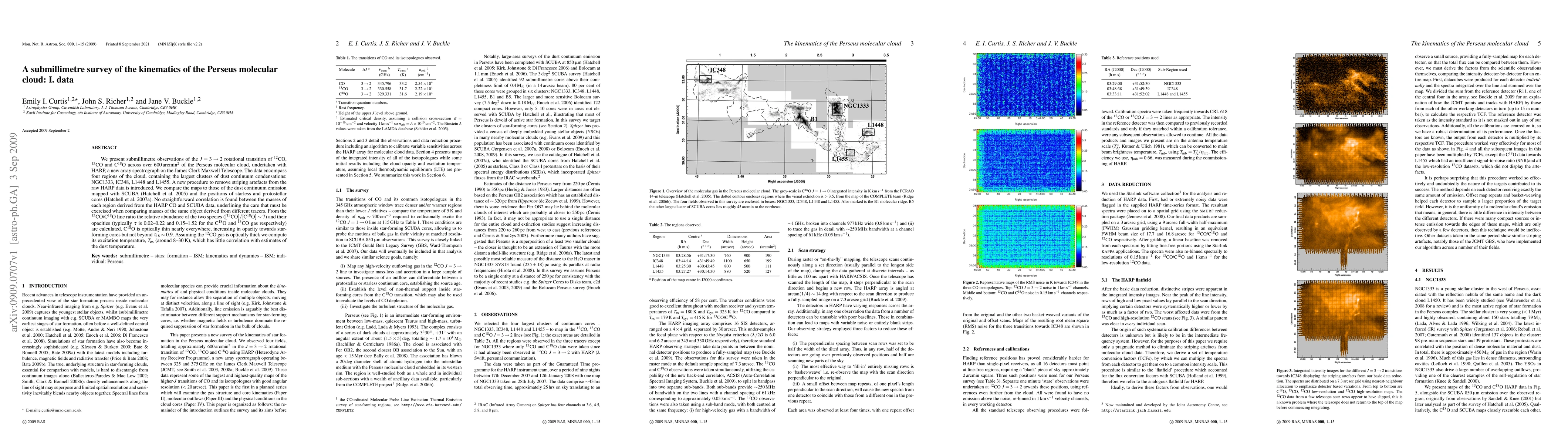 This study presents submillimetre observations of the Perseus molecular cloud using HARP, revealing the kinematics of 12CO, 13CO, and C18O across four key regions. The analysis highlights discrepancies in mass estimates derived from different tracers and provides insights into the relative abundances and opacities of 13CO and C18O, with 12CO gas excitation temperatures ranging from 8-30 K.