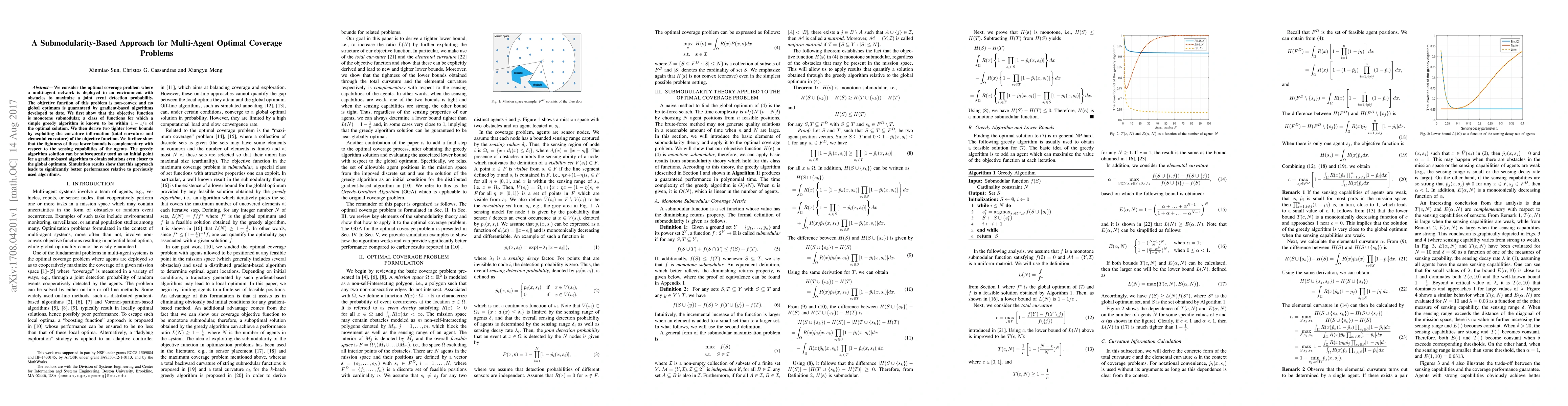 A new approach uses submodularity to optimize coverage in multi-agent networks with obstacles, achieving performance better than existing algorithms through a combination of greedy and gradient-based methods.