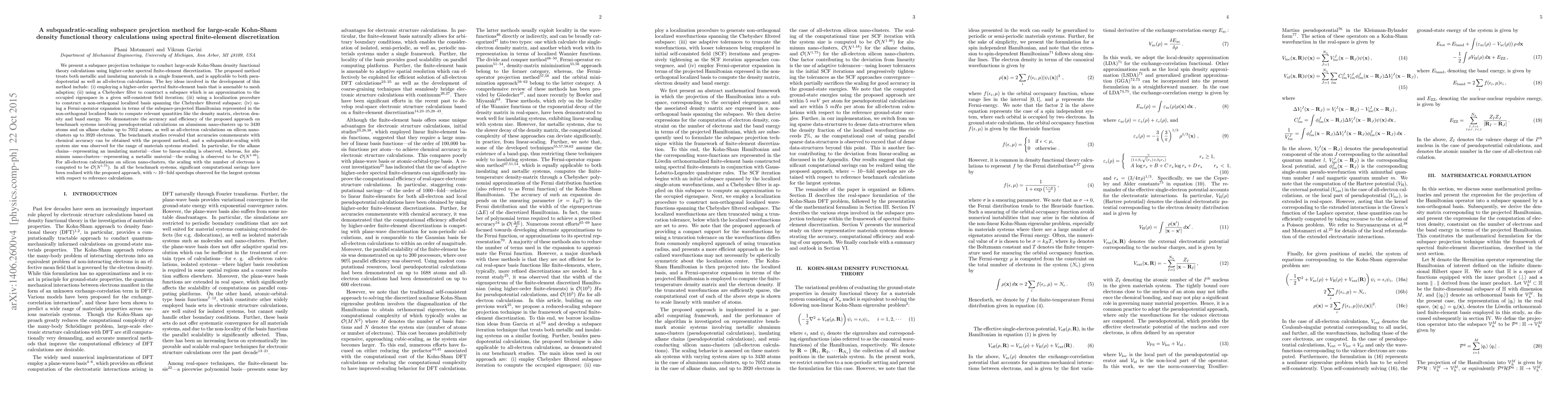 This paper introduces a subspace projection method for large-scale Kohn-Sham density functional theory calculations using spectral finite-element discretization, achieving subquadratic-scaling efficiency. The method employs a Chebyshev filter and localization procedure to construct an efficient subspace for computations, demonstrating accuracy and efficiency on benchmark systems.