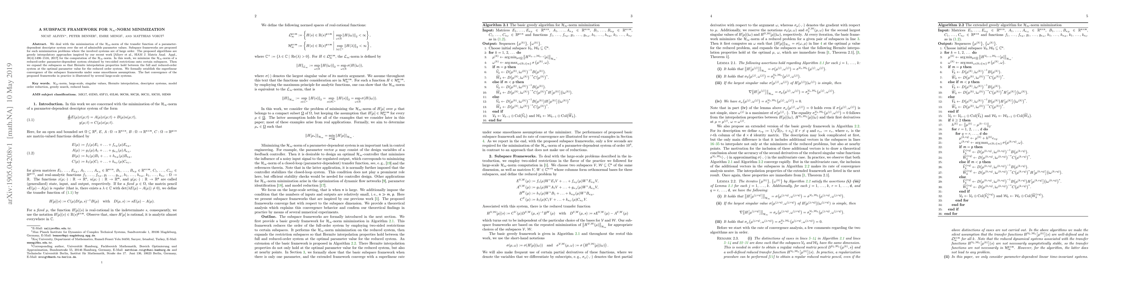 This paper proposes subspace frameworks for minimizing the ${\mathcal H}_\infty$-norm of large-order parameter-dependent descriptor systems. The algorithms utilize greedy interpolation techniques and demonstrate superlinear convergence under smoothness assumptions, with practical efficiency shown through large-scale system examples.