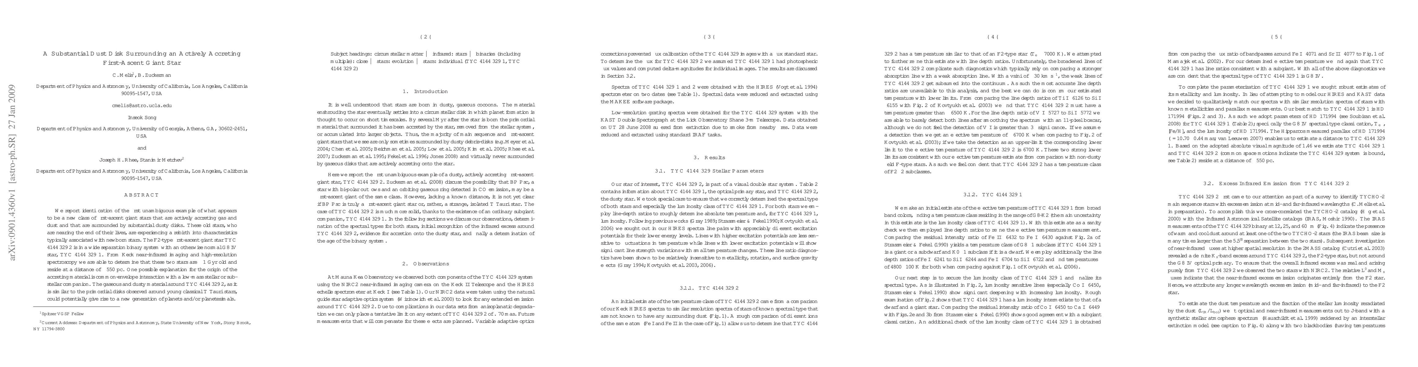 We report identification of the first unambiguous example of what appears to be a new class of first-ascent giant stars that are actively accreting gas and dust and that are surrounded by substantial dusty disks. These old stars, who are nearing the end of their lives, are experiencing a rebirth into characteristics typically associated with newborn stars. The F2-type first-ascent giant star TYC 4144 329 2 is in a wide separation binary system with an otherwise normal G8 IV star, TYC 4144 329 1. From Keck near-infrared imaging and high-resolution spectroscopy we are able to determine that these two stars are $\sim$1 Gyr old and reside at a distance of $\sim$550 pc. One possible explanation for the origin of the accreting material is common-envelope interaction with a low-mass stellar or sub-stellar companion. The gaseous and dusty material around TYC 4144 329 2, as it is similar to the primordial disks observed around young classical T Tauri stars, could potentially give rise to a new generation of planets and/or planetesimals.