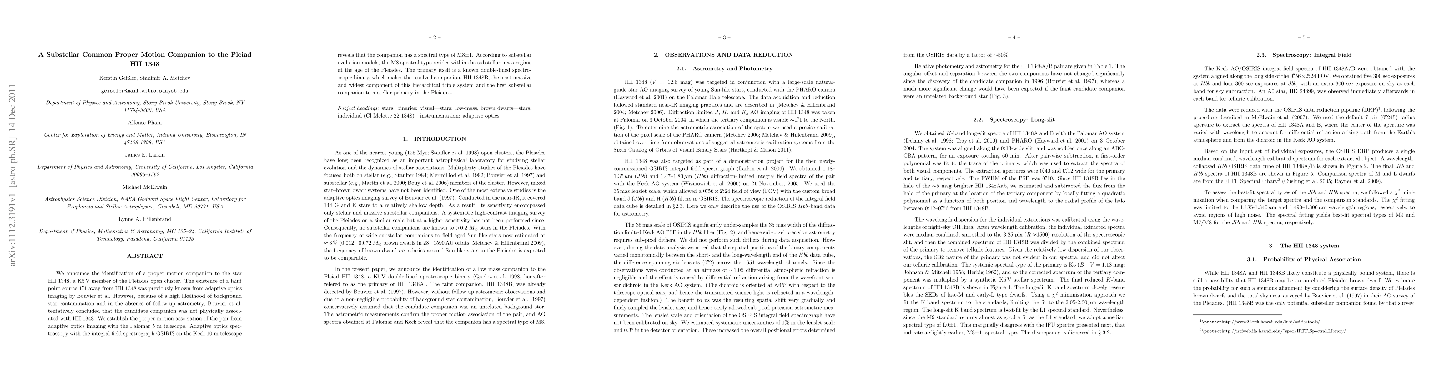 This paper identifies a substellar companion, HII 1348B, to the Pleiades star HII 1348, confirmed through adaptive optics imaging and spectroscopy. The companion, classified as an M8 substellar object, forms the first substellar companion discovered in the Pleiades cluster.