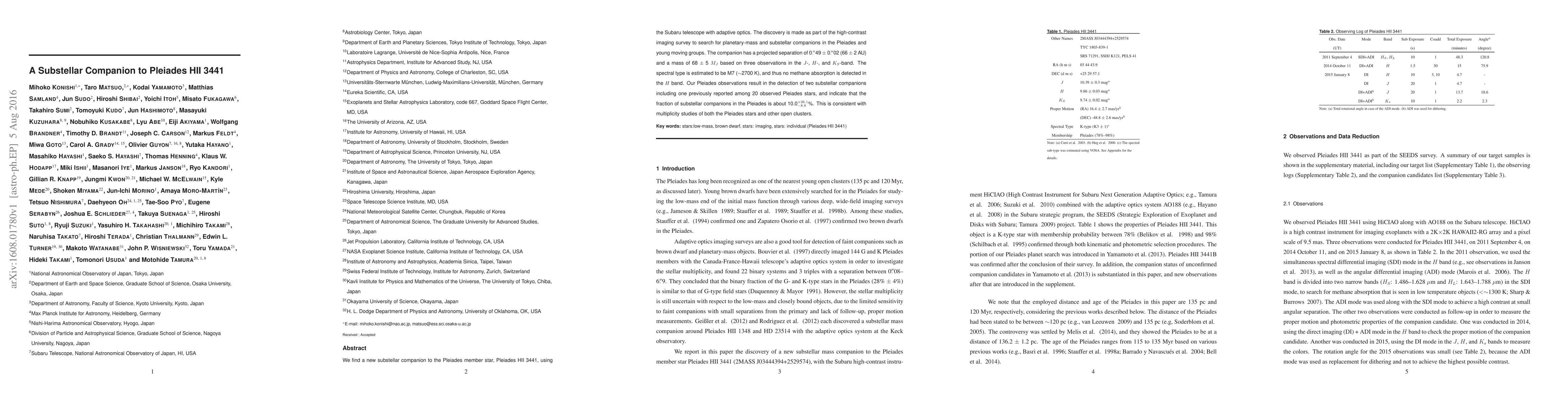 The Subaru telescope with adaptive optics discovered a new substellar companion to Pleiades HII 3441, with a mass of 68 ± 5 M_J and a projected separation of 66 ± 2 AU, indicating a 10.0 ± 26.1/-8.8% substellar companion fraction in the Pleiades.