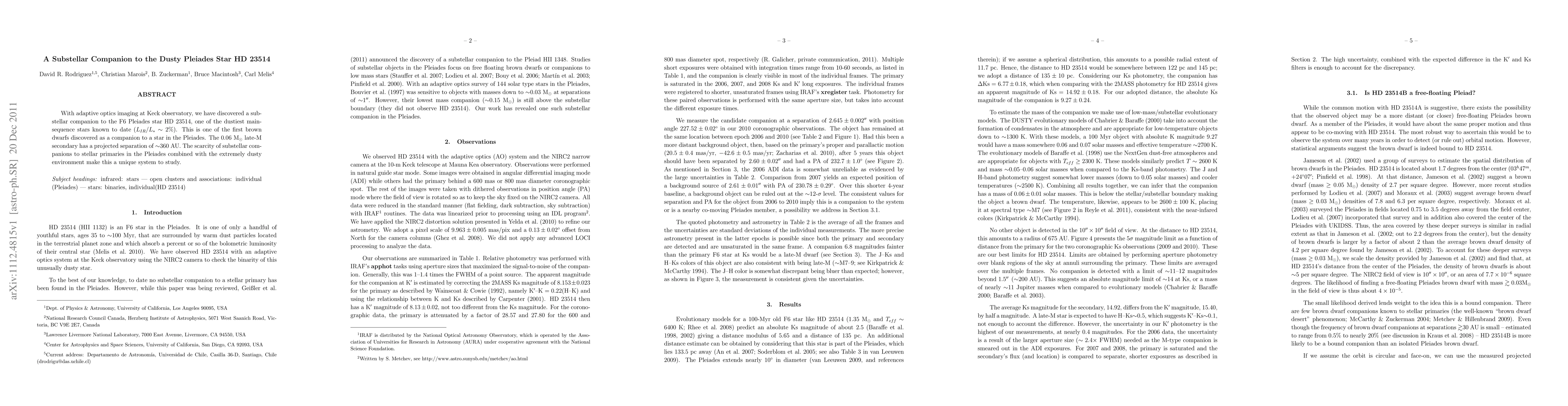 Researchers discovered a substellar companion, a late-M brown dwarf, to the dusty Pleiades star HD 23514 using adaptive optics imaging at Keck Observatory. This unique system, with a projected separation of ~360 AU, adds to the scarcity of known substellar companions in the Pleiades.