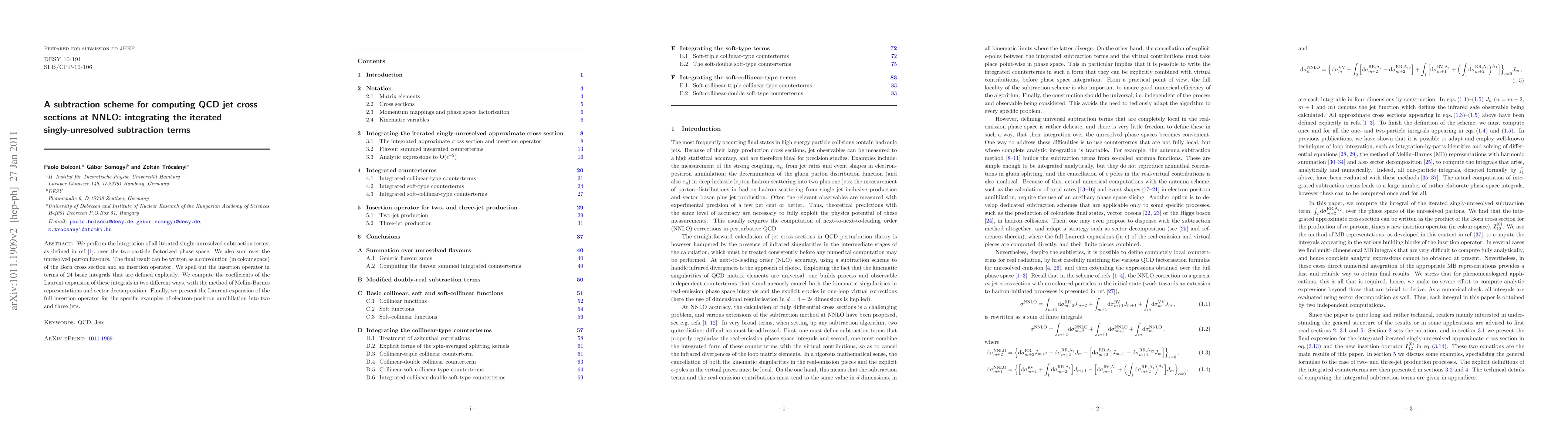 Researchers developed a method for computing QCD jet cross sections at NNLO (Next-to-Leading Order) precision, integrating iterated singly-unresolved subtraction terms into a convolution of the Born cross section and an insertion operator.