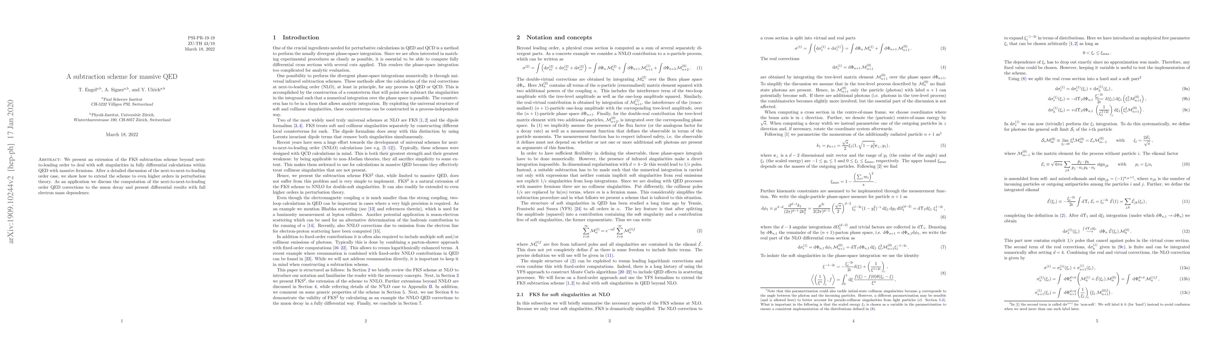 We present an extension of the FKS subtraction scheme beyond next-to-leading order to deal with soft singularities in fully differential calculations within QED with massive fermions. After a detailed discussion of the next-to-next-to-leading order case, we show how to extend the scheme to even higher orders in perturbation theory. As an application we discuss the computation of the next-to-next-to-leading order QED corrections to the muon decay and present differential results with full electron mass dependence.