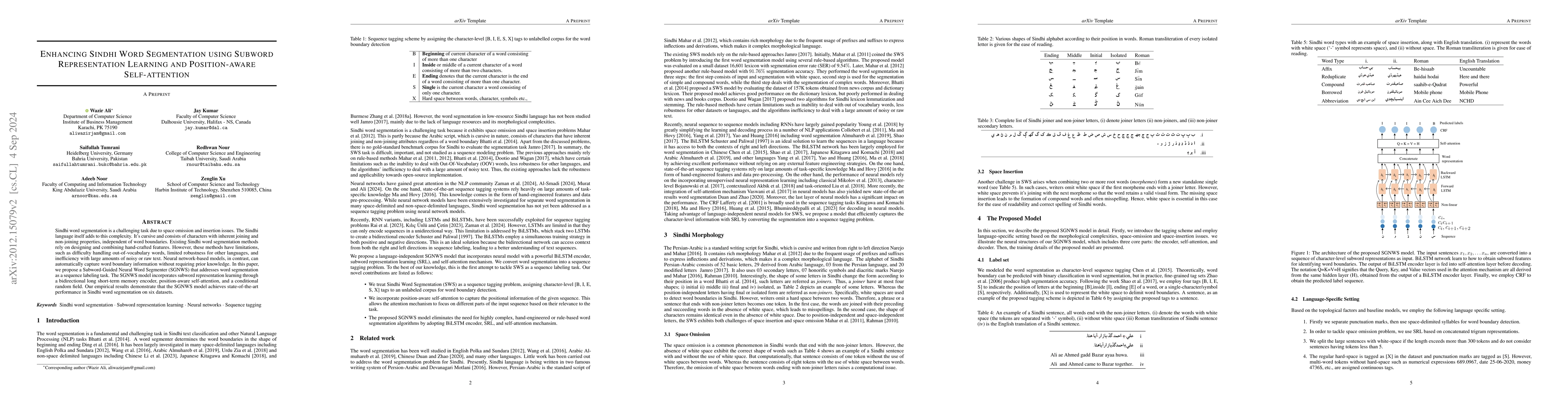 This paper proposes a Subword Guided Neural Word Segmenter (SGNWS) model to tackle the segmentation challenges of the under-resourced Sindhi language. The model leverages subword representations within a recurrent neural architecture with BiLSTM, self-attention, and CRF, achieving an F1 score of 98.51% without manual feature engineering, outperforming existing segmenters.