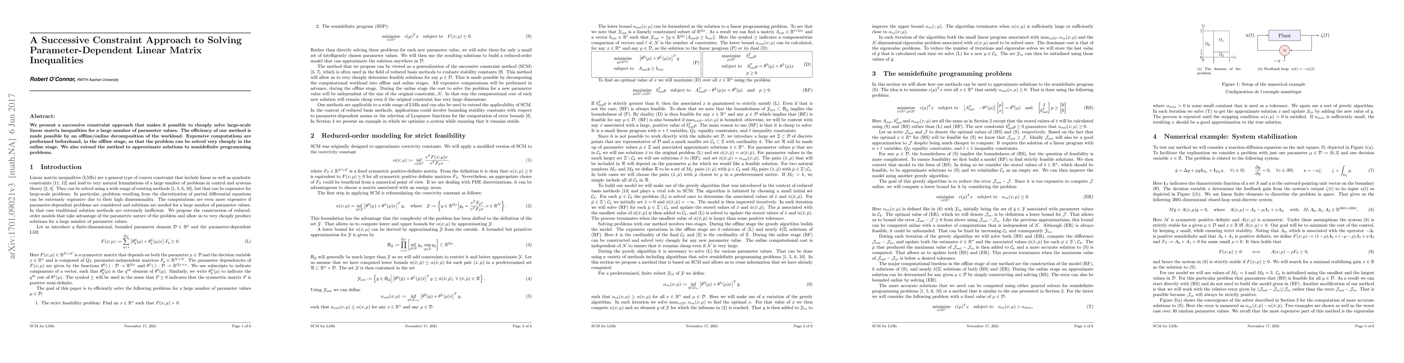 We present a successive constraint approach that makes it possible to cheaply solve large-scale linear matrix inequalities for a large number of parameter values. The efficiency of our method is made possible by an offline/online decomposition of the workload. Expensive computations are performed beforehand, in the offline stage, so that the problem can be solved very cheaply in the online stage. We also extend the method to approximate solutions to semidefinite programming problems.