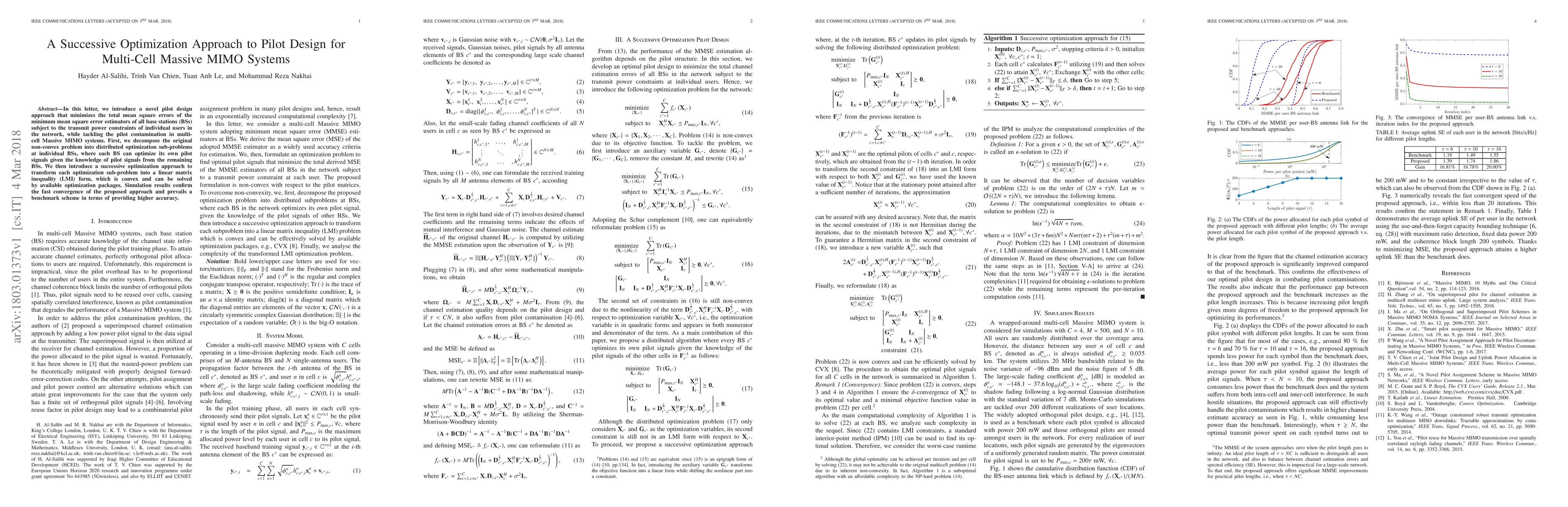 In this letter, we introduce a novel pilot design approach that minimizes the total mean square errors of the minimum mean square error estimators of all base stations (BSs) subject to the transmit power constraints of individual users in the network, while tackling the pilot contamination in multi-cell Massive MIMO systems. First, we decompose the original non-convex problem into distributed optimization sub-problems at individual BSs, where each BS can optimize its own pilot signals given the knowledge of pilot signals from the remaining BSs. We then introduce a successive optimization approach to transform each optimization sub-problem into a linear matrix inequality (LMI) form, which is convex and can be solved by available optimization packages. Simulation results confirm the fast convergence of the proposed approach and prevails a benchmark scheme in terms of providing higher accuracy.