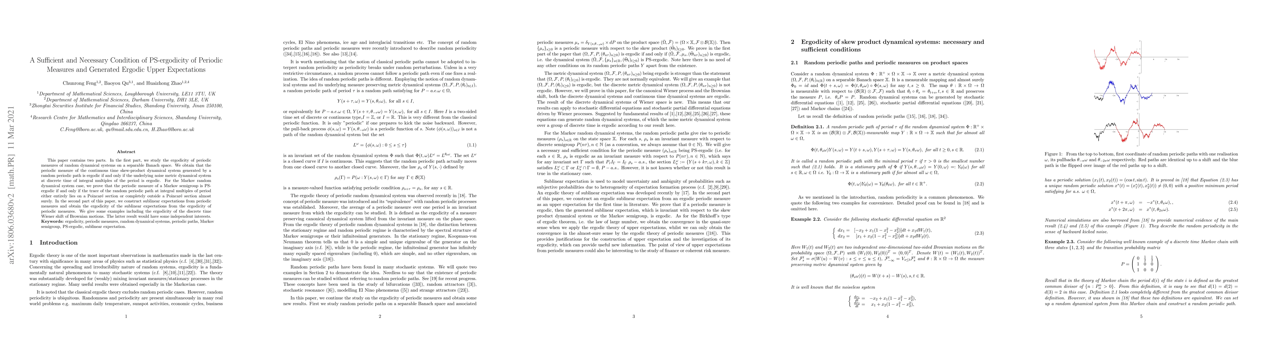 This paper establishes a necessary and sufficient condition for the PS-ergodicity of periodic measures in random dynamical systems, showing that such measures are ergodic if the underlying noise metric dynamical system is ergodic at discrete time intervals. It also constructs sublinear expectations from these periodic measures and proves their ergodicity.