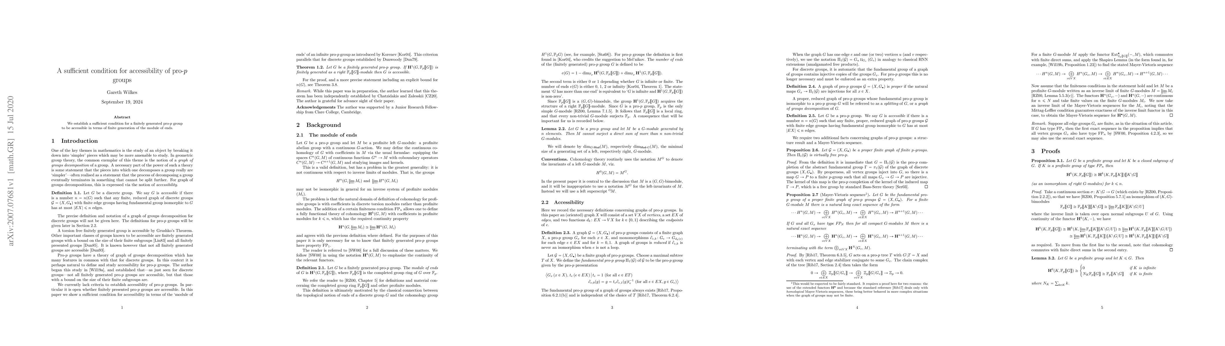 Summary: This paper presents a sufficient condition for finitely generated pro-$p$ groups to be accessible, based on the finite generation of their module of ends. The result provides a new criterion for determining accessibility in the context of pro-$p$ groups.