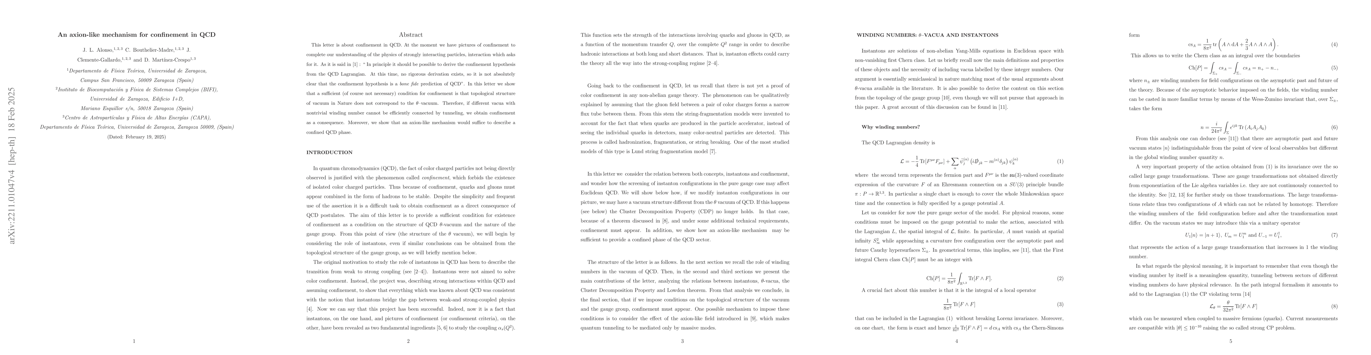 This paper proposes a sufficient condition for confinement in Quantum Chromodynamics (QCD), demonstrating that the absence of tunneling between vacua with nontrivial winding numbers implies confinement, thereby addressing the lack of a rigorous derivation of the confinement hypothesis directly from the QCD Lagrangian.