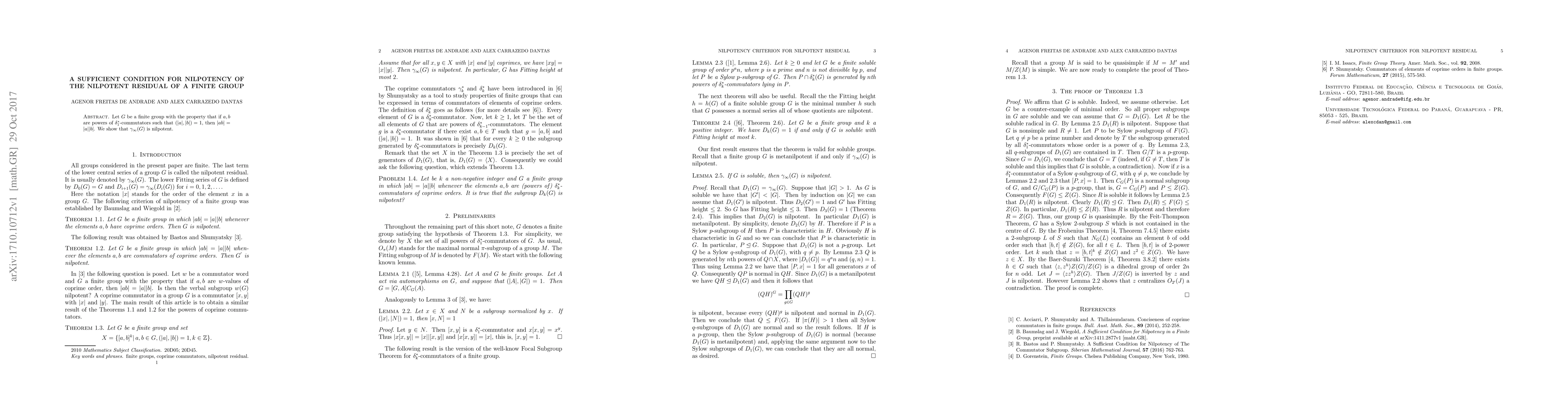Let $G$ be a finite group with the property that if $a,b$ are powers of $\delta_1^*$-commutators such that $(|a|,|b|)=1$, then $|ab|=|a||b|$. We show that $\gamma_{\infty}(G)$ is nilpotent.