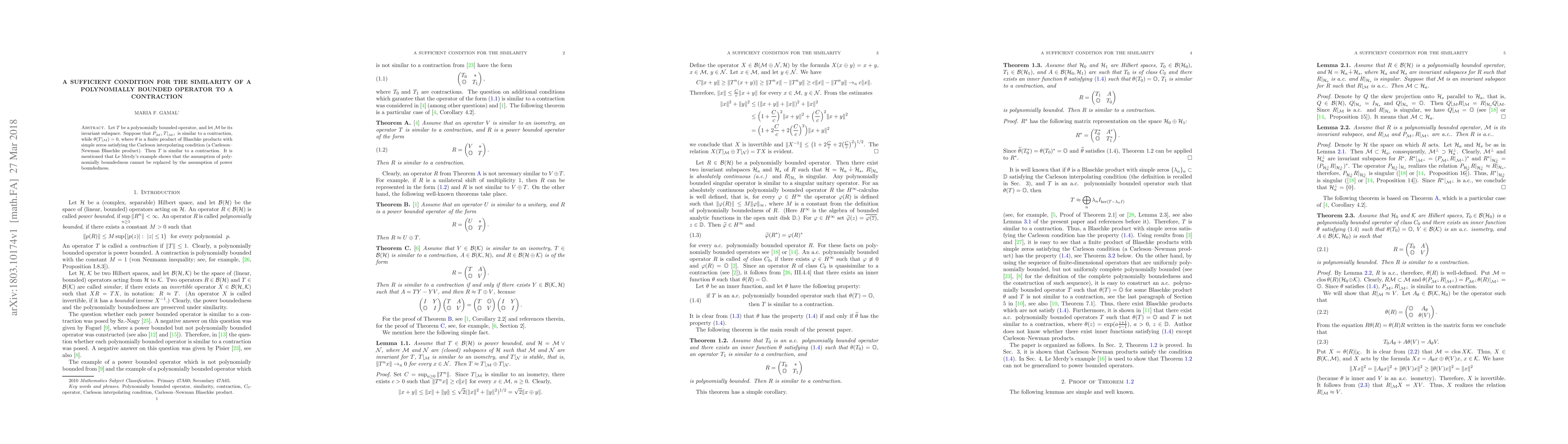 Let $T$ be a polynomially bounded operator, and let $\mathcal M$ be its invariant subspace. Suppose that $P_{\mathcal M^\perp}T|_{\mathcal M^\perp}$ is similar to a contraction, while $\theta(T|_{\mathcal M})=0$, where $\theta$ is a finite product of Blaschke products with simple zeros satisfying the Carleson interpolating condition (a Carleson--Newman Blaschke product). Then $T$ is similar to a contraction. It is mentioned that Le Merdy's example shows that the assumption of polynomially boundedness cannot be replaced by the assumption of power boundedness.
