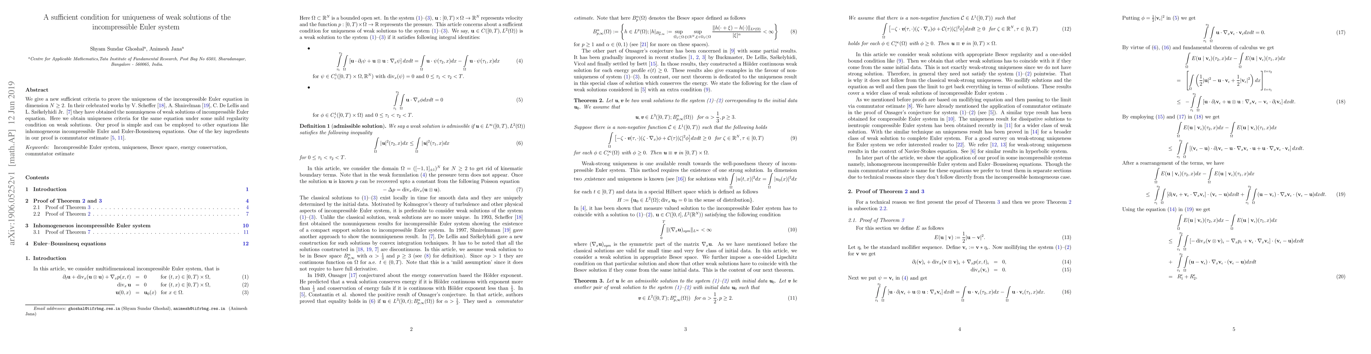 This paper presents a new sufficient condition for proving the uniqueness of weak solutions to the incompressible Euler equation in dimensions $N\geq2$, overcoming previous results that demonstrated nonuniqueness. The proof leverages a mild regularity condition and a commutator estimate.