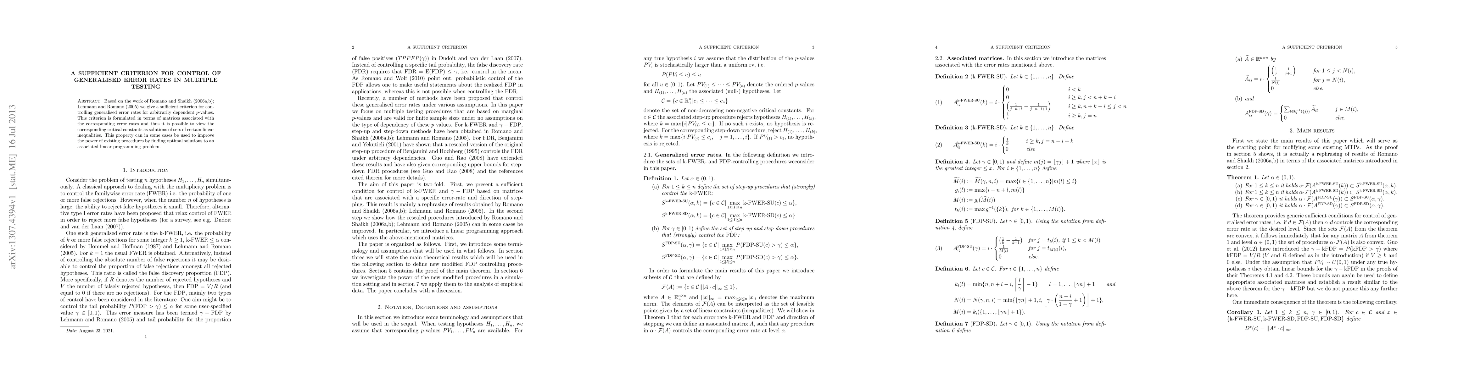 This paper presents a sufficient criterion for controlling generalised error rates in multiple testing, applicable to any dependent p-values. It formulates the criterion using matrices linked to error rates, enabling critical constants as linear inequality solutions. This approach can optimize existing procedures via linear programming, potentially enhancing their power.