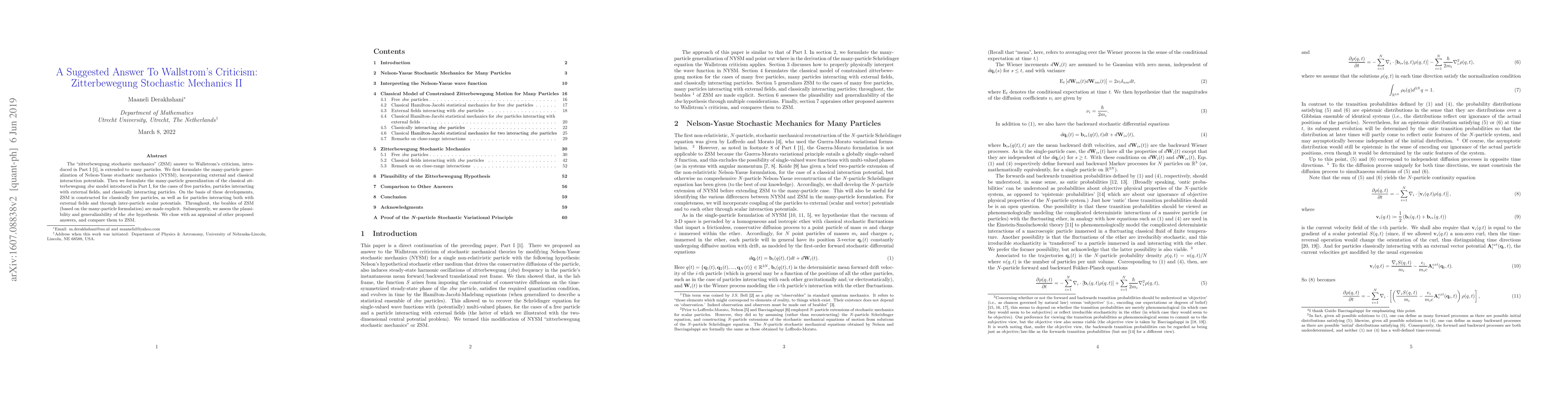 The "zitterbewegung stochastic mechanics" (ZSM) answer to Wallstrom's criticism, introduced in the companion paper [1], is extended to many particles. We first formulate the many-particle generalization of Nelson-Yasue stochastic mechanics (NYSM), incorporating external and classical interaction potentials. Then we formulate the many-particle generalization of the classical zitterbewegung \emph{zbw} model introduced in Part I, for the cases of free particles, particles interacting with external fields, and classically interacting particles. On the basis of these developments, ZSM is constructed for classically free particles, as well as for particles interacting both with external fields and through inter-particle scalar potentials. Throughout, the beables of ZSM (based on the many-particle formulation) are made explicit. Subsequently, we assess the plausibility and generalizability of the\emph{zbw} hypothesis. We close with an appraisal of other proposed answers, and compare them to ZSM.