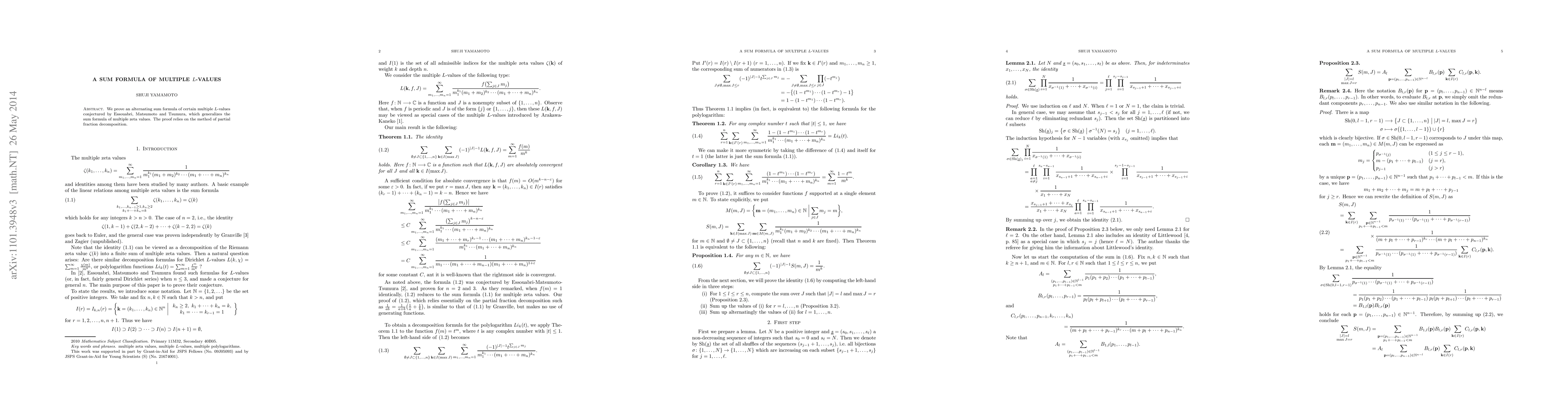 Summary: This paper presents a sum formula for multiple L-values, generalizing the sum formula for multiple zeta-values, and proves it using partial fraction decomposition techniques. The result extends the conjecture proposed by Essouabri-Matsumoto-Tsumura.