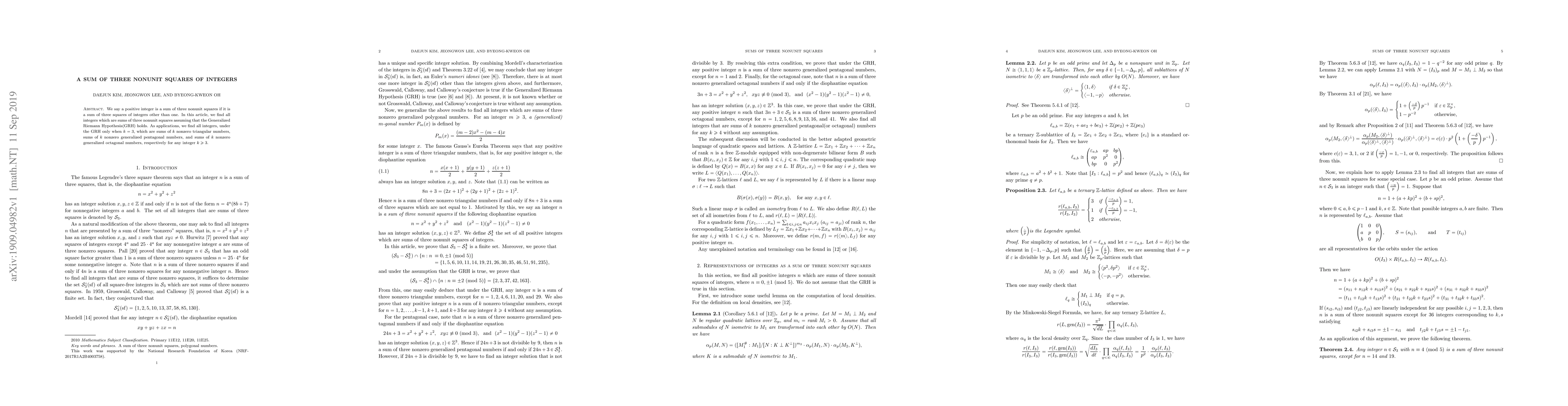This paper identifies all integers expressible as the sum of three nonunit squares under the assumption of the Generalized Riemann Hypothesis (GRH). It also extends the findings to sums of $k$ nonzero triangular, pentagonal, and octagonal numbers for $k \geq 3$.