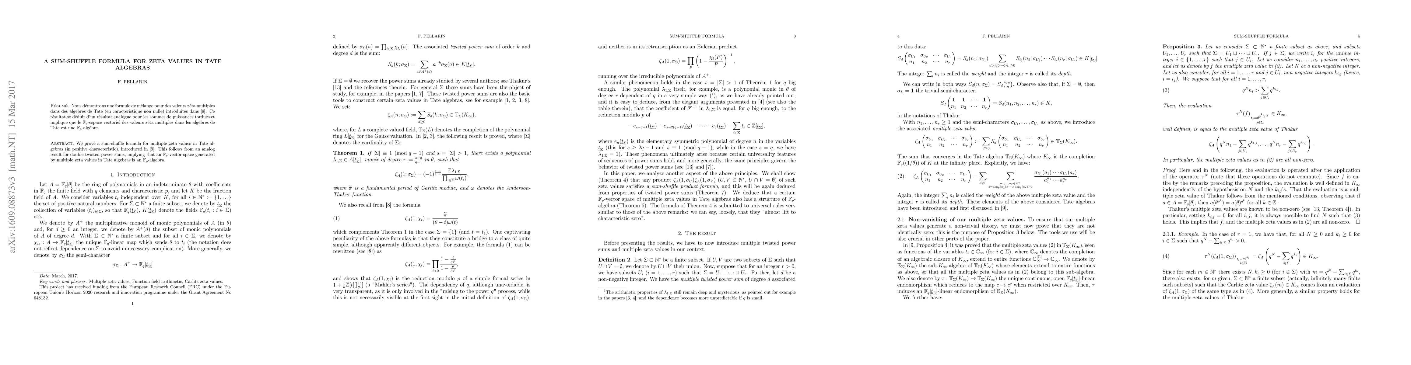 We prove a sum-shuffle formula for multiple zeta values in Tate algebras (in positive characteristic), introduced in \cite{PEL3}.This follows from an analog result for double twisted power sums, implying that an ${\mathbb{F}\_p$-vector space generated by multiple zeta values in Tate algebras is an ${\mathbb{F}\_p$-algebra.