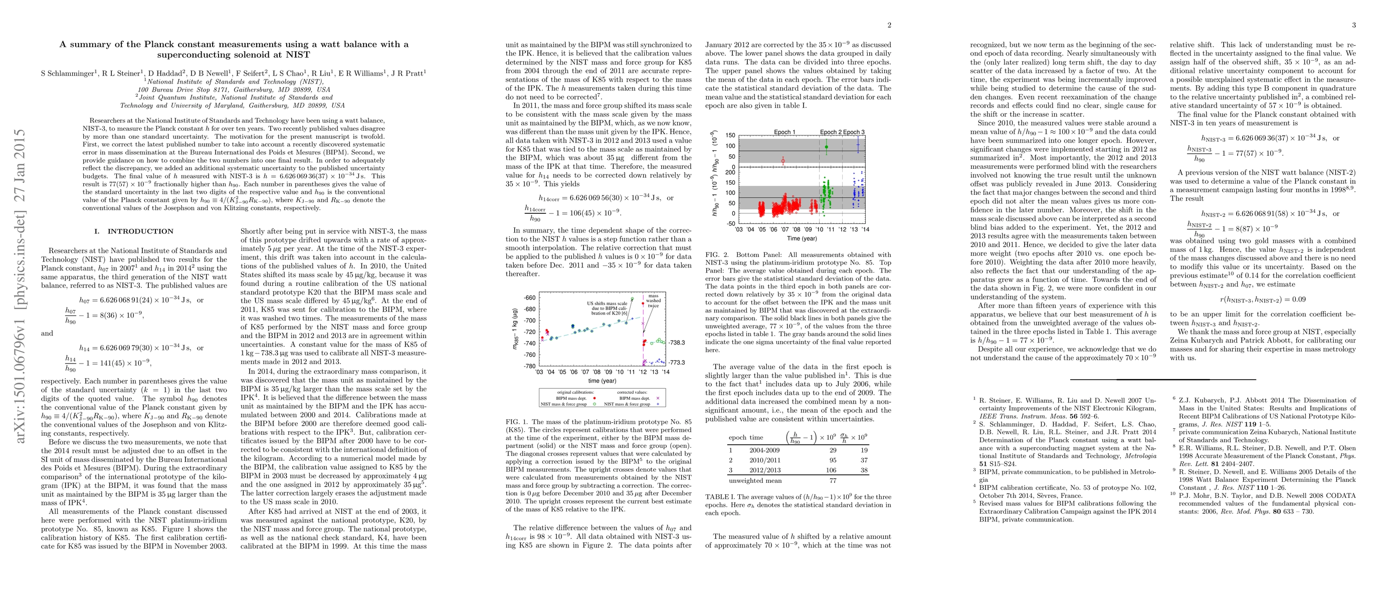 Researchers at NIST have refined the Planck constant measurement using a watt balance, correcting a systematic error and combining two results to yield $h = 6.626\,069\,36(37)\times 10^{-34}\,\mbox{J\,s}$. This value is fractionally higher than the conventional $h_{\mathrm{90}}$ by $77(57) \times 10^{-9}$.