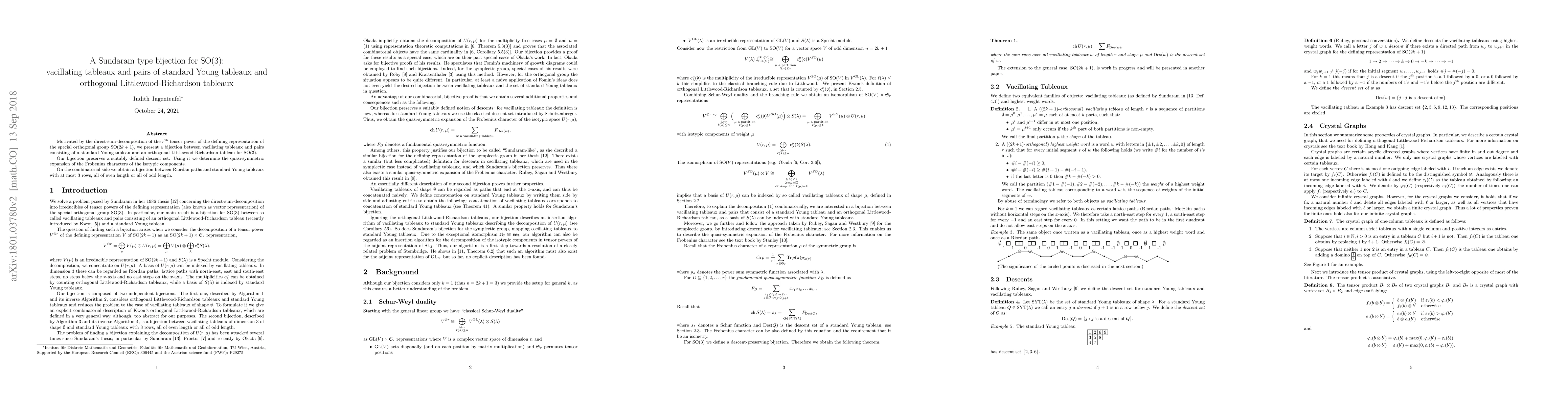This paper establishes a bijection between vacillating tableaux and pairs of standard Young tableaux and orthogonal Littlewood-Richardson tableaux for SO(3), enabling the determination of Frobenius characters of isotypic components. The descent set of vacillating tableaux is preserved, providing a quasi-symmetric expansion of these characters.