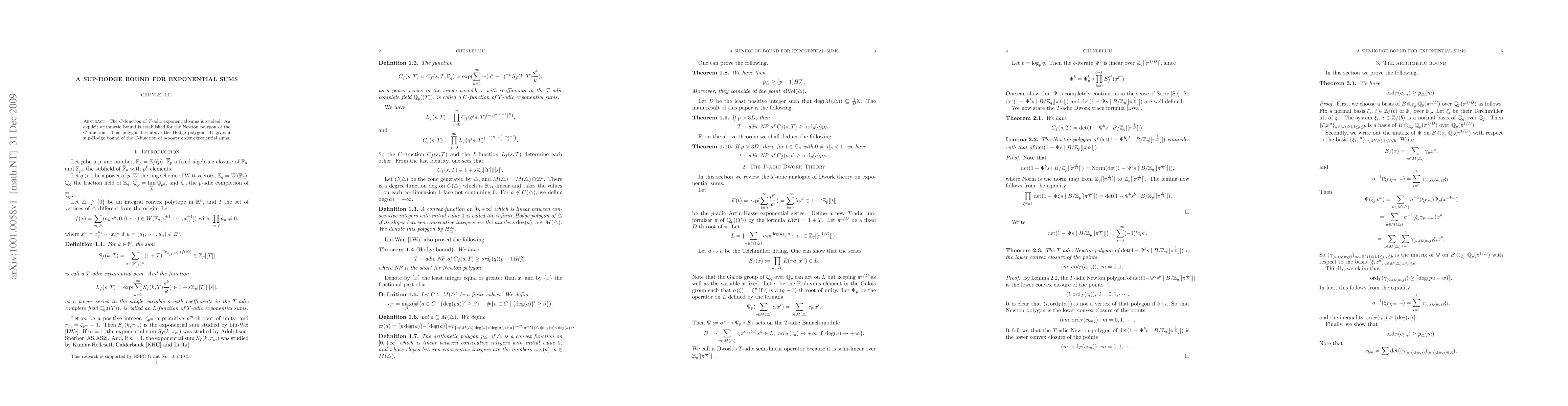The $C$-function of $T$-adic exponential sums is studeid. An explicit arithmetic bound is established for the Newton polygon of the $C$-function. This polygon lies above the Hodge polygon. It gives a sup-Hodge bound of the $C$-function of $p$-power order exponential sums.