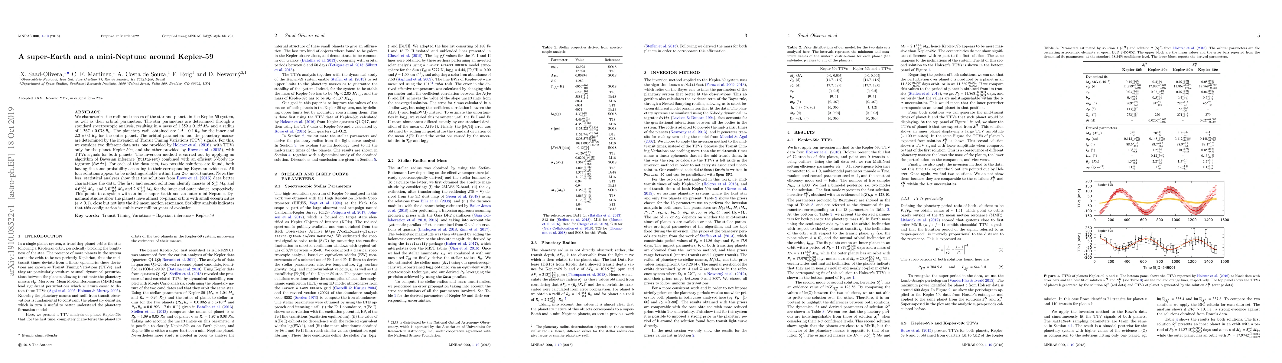 This research characterizes the Kepler-59 system, revealing a star with a mass and radius of $1.359\pm 0.155\,M_\odot$ and $1.367\pm 0.078\,R_\odot$, respectively. It identifies an inner super-Earth and an outer mini-Neptune with radii of $1.5\pm 0.1\,R_\oplus$ and $2.2\pm 0.1\,R_\oplus$, respectively, and masses derived from TTV analysis suggesting configurations of $5_{-2}^{+4}~M_{\mathrm{\oplus}}$ and $3.0^{+0.8}_{-0.8}~M_{\mathrm{\oplus}}$.