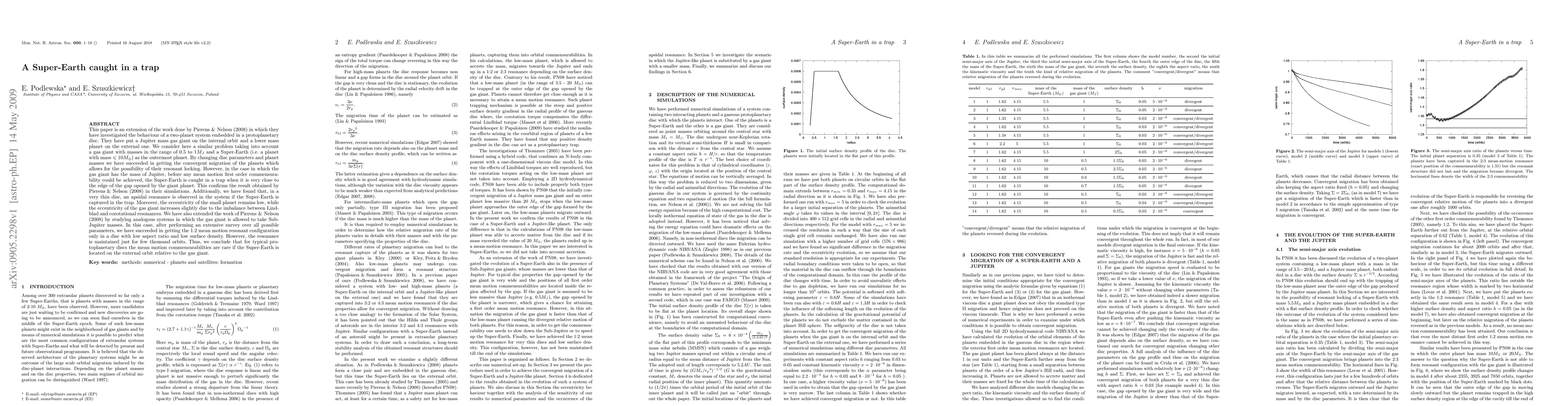 This paper is an extension of the work done by Pierens & Nelson (2008) in which they have investigated the behaviour of a two-planet system embedded in a protoplanetary disc. They have put a Jupiter mass gas giant on the internal orbit and a lower mass planet on the external one. We consider here a similar problem taking into account a gas giant with masses in the range of 0.5 to 1 Jupiter mass and a Super-Earth as the outermost planet. By changing disc parameters and planet masses we have succeeded in getting the convergent migration which allows for the possibility of their resonant locking. However, in the case in which the gas giant has the mass of Jupiter, before any mean motion first order commensurability could be achieved, the Super-Earth is caught in a trap when it is very close to the edge of the gap opened by the giant planet. This confirms the result obtained by Pierens & Nelson (2008) in their simulations. Additionally, we have found that, in a very thin disc, an apsidal resonance is observed in the system if the Super-Earth is captured in the trap. Moreover, the eccentricity of the small planet remains low, while that of the gas giant increases slightly due to the imbalance between Lindblad and corotational resonances. We have also studied analogous systems in which the gas giant is allowed to take Sub-Jupiter masses. In this case, after performing an extensive survey over all possible parameters, we have succeeded in getting the 1:2 mean motion resonant configuration only in a disc with low aspect ratio and low surface density. However, the resonance is maintained just for few thousand orbits. Thus, we conclude that for typical protoplanetary discs the mean motion commensurabilities are rare if the Super-Earth is located on the external orbit relative to the gas giant. (abridged)