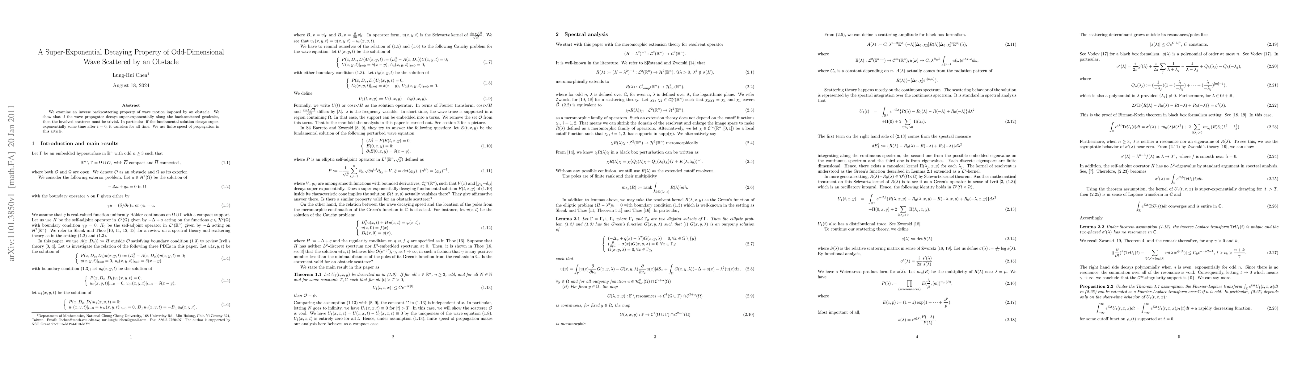 We examine an inverse backscattering property of wave motion imposed by an obstacle. We show that if the wave propagator decays super-exponentially along the back-scattered geodesics, then the involved scatterer must be trivial. In particular, if the fundamental solution decays super-exponentially some time after t=0, it vanishes for all time. We use finite speed of propagation in this article.