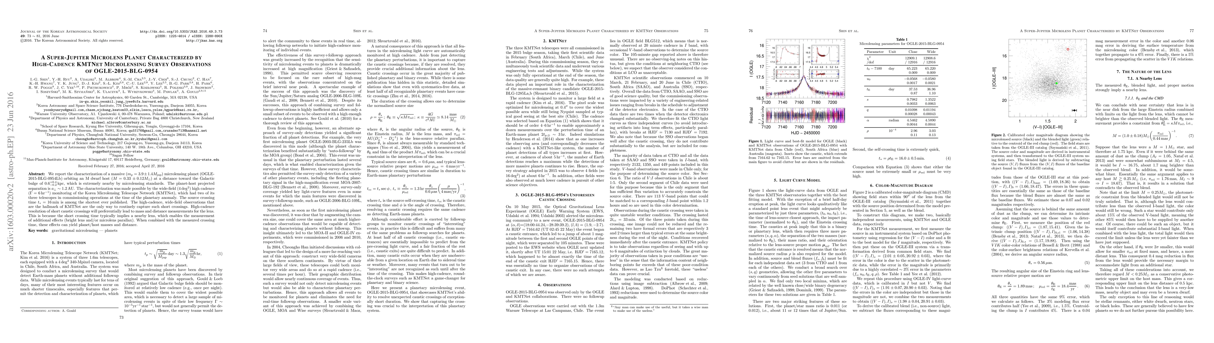 This paper characterizes a massive microlensing planet (OGLE-2015-BLG-0954Lb) with a mass of 3.9 ± 1.4 M_jup, discovered via high-cadence observations by the KMTNet. The planet orbits an M dwarf host at a distance of 0.6 kpc, allowing precise mass and distance measurements due to the short source crossing time of 16 minutes.
