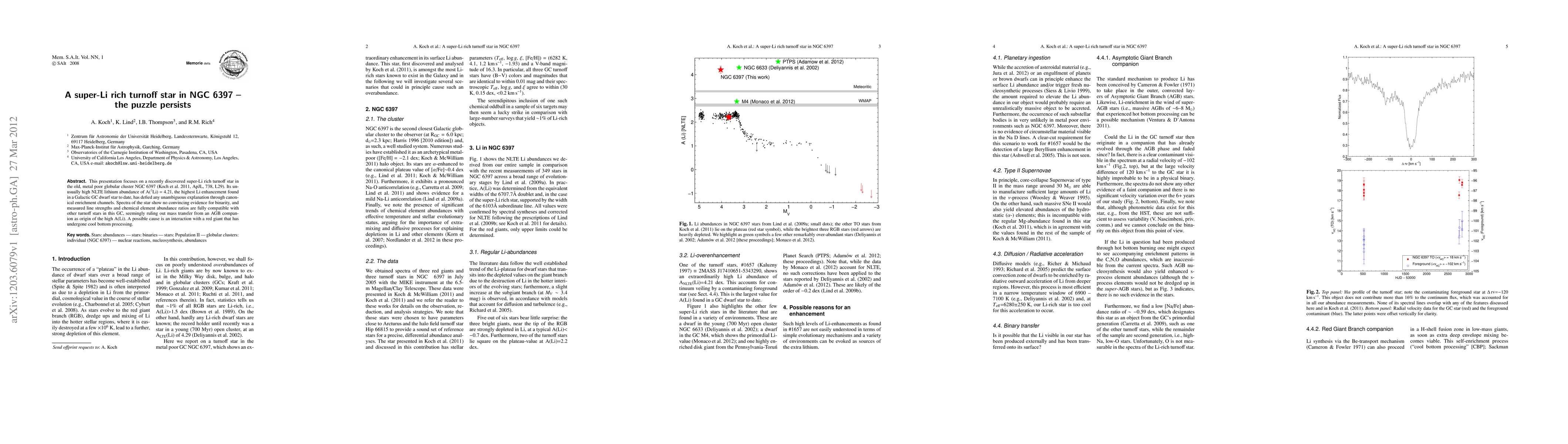 This presentation focuses on a recently discovered super-Li rich turnoff star in the old, metal poor globular cluster NGC 6397 (Koch et al. 2011, ApJL, 738, L29). Its unusually high NLTE lithium abundance of A(7Li) = 4.21, the highest Li enhancement found in a Galactic GC dwarf star to date, has defied any unambiguous explanation through canonical enrichment channels. Spectra of the star show no convincing evidence for binarity, and measured line strengths and chemical element abundance ratios are fully compatible with other turnoff stars in this GC, seemingly ruling out mass transfer from an AGB companion as origin of the high A(Li). A possible cause is an interaction with a red giant that has undergone cool bottom processing.