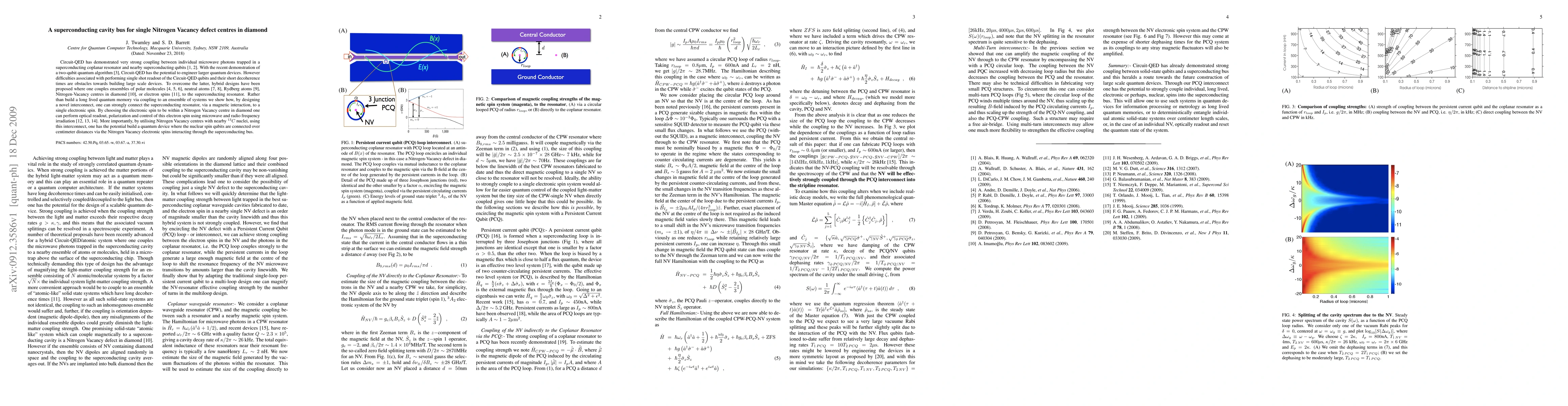 Circuit-QED has demonstrated very strong coupling between individual microwave photons trapped in a superconducting coplanar resonator and nearby superconducting qubits. In this work we show how, by designing a novel interconnect, one can strongly connect the superconducting resonator, via a magnetic interaction, to a small number (perhaps single), of electronic spins. By choosing the electronic spin to be within a Nitrogen Vacancy centre in diamond one can perform optical readout, polarization and control of this electron spin using microwave and radio frequency irradiation. More importantly, by utilising Nitrogen Vacancy centres with nearby 13C nuclei, using this interconnect, one has the potential build a quantum device where the nuclear spin qubits are connected over centimeter distances via the Nitrogen Vacancy electronic spins interacting through the superconducting bus.